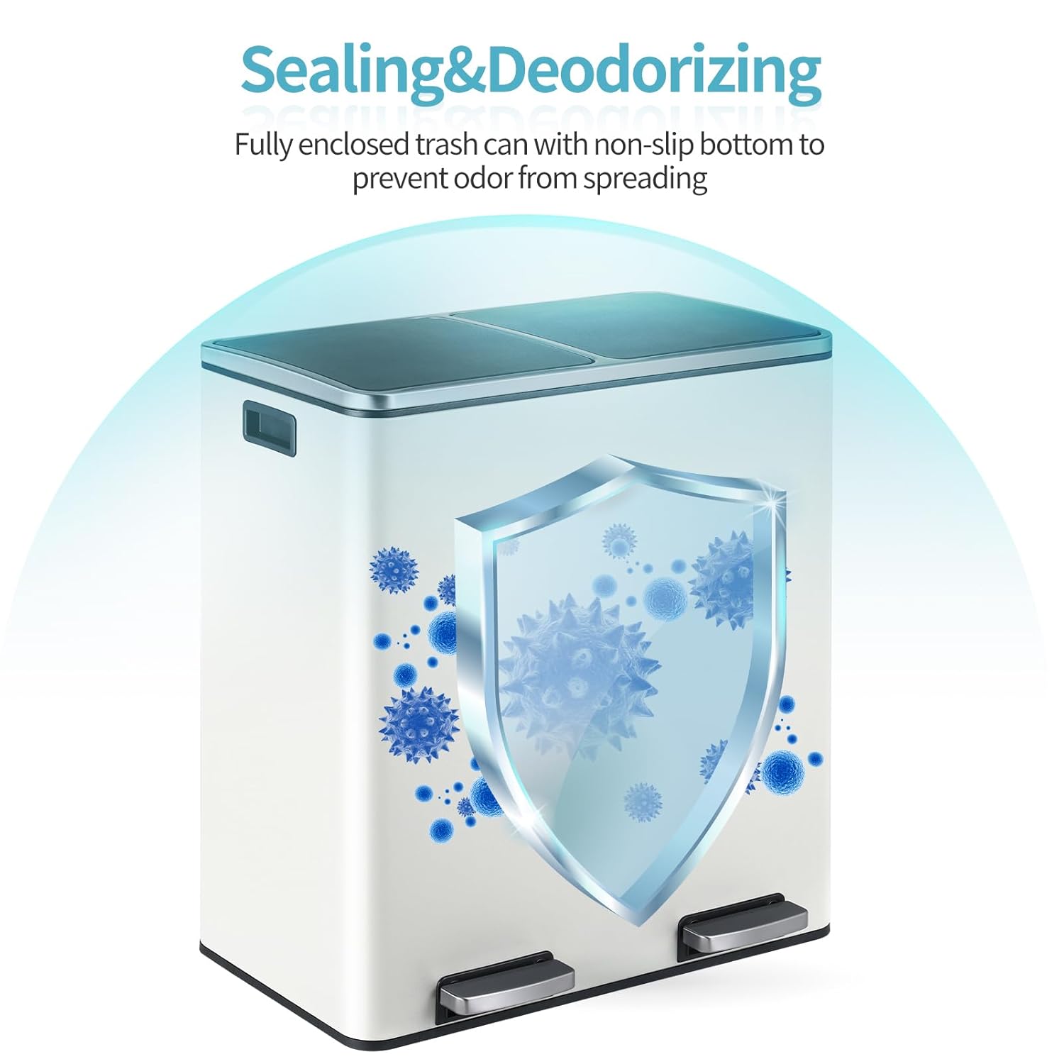 • 2×8-Gallon Compartments: 16-gallon step trash can has two compartments, combining garbage and recycling. Completely separated dual garbage and recycling can also avoid the smell of garbage. 2 removable inner buckets increase convenience