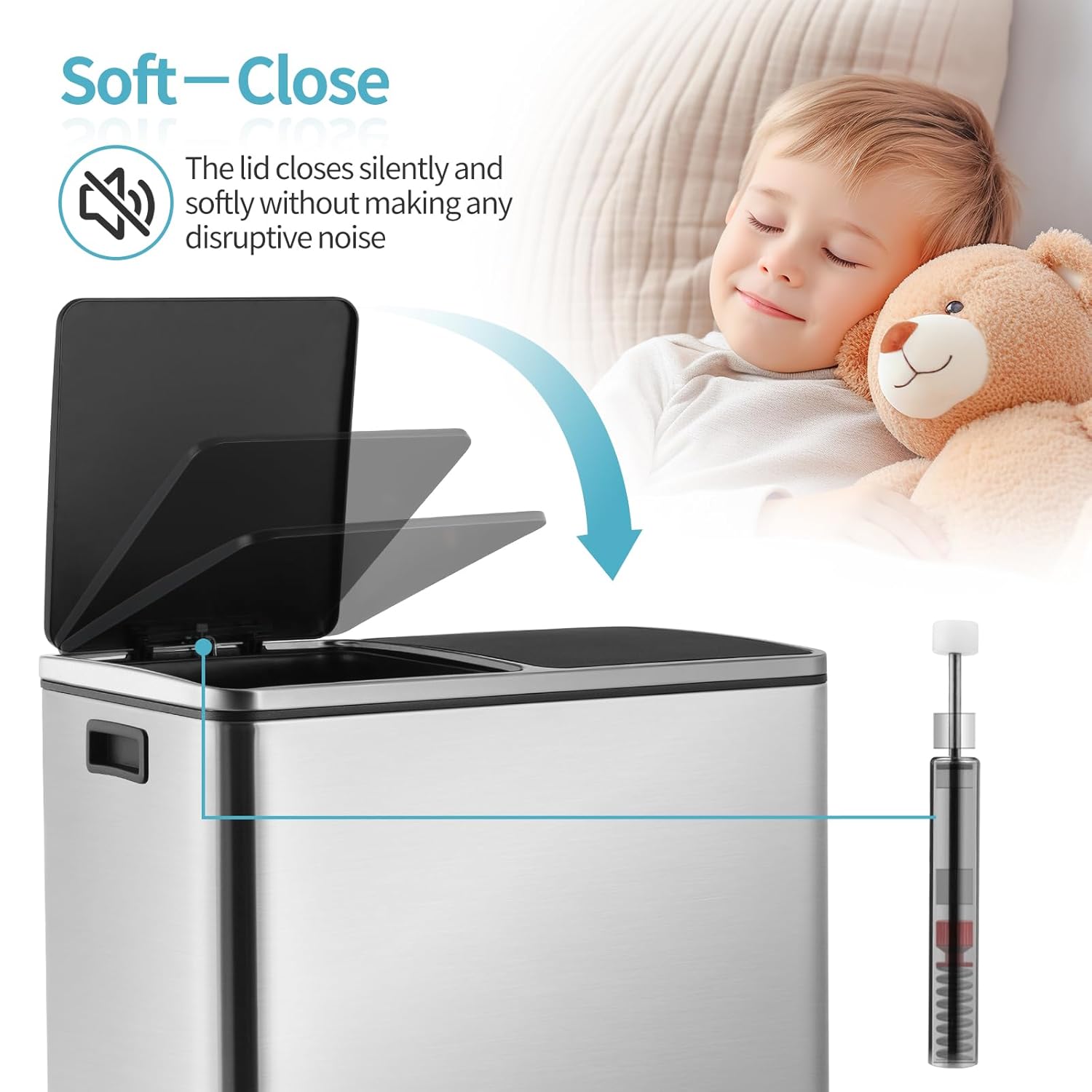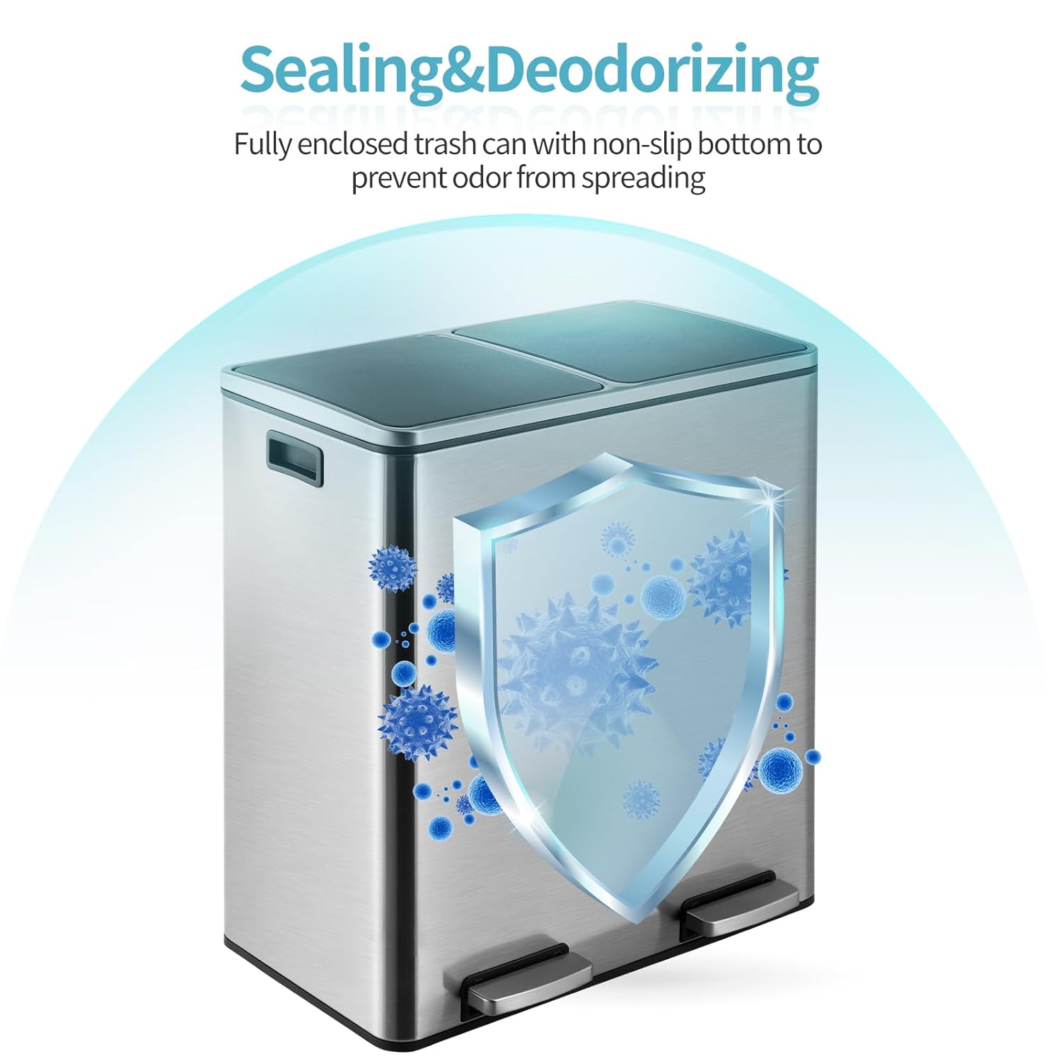 • 2×8-Gallon Compartments: 16-gallon step trash can has two compartments, combining garbage and recycling. Completely separated dual garbage and recycling can also avoid the smell of garbage. 2 removable inner buckets increase convenience