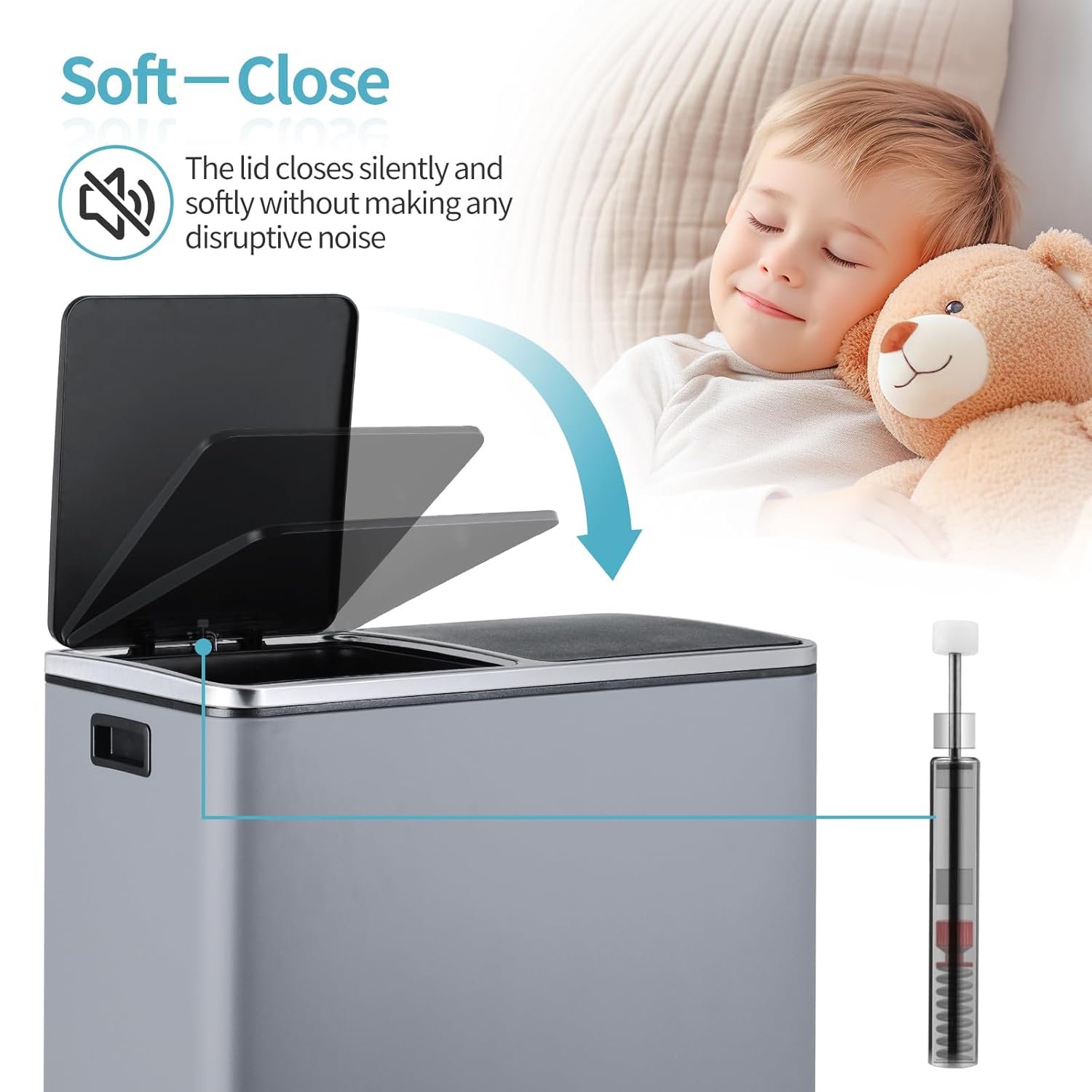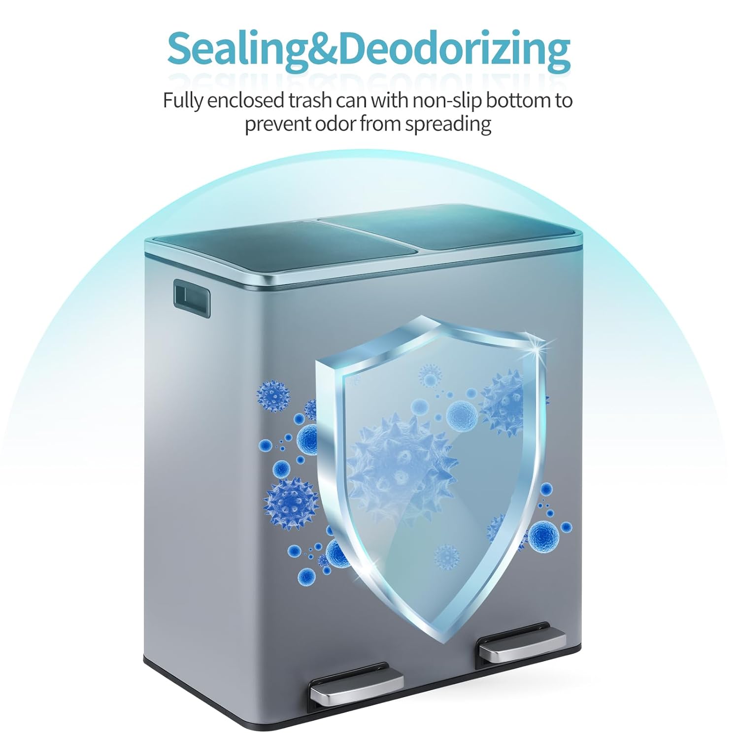 • 2×8-Gallon Compartments: 16-gallon step trash can has two compartments, combining garbage and recycling. Completely separated dual garbage and recycling can also avoid the smell of garbage. 2 removable inner buckets increase convenience