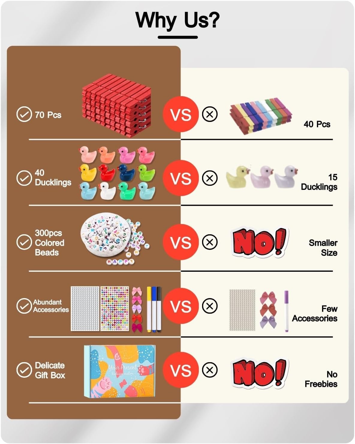 • 🎯 Wide Usage – From Sidelines to Classrooms: 🏈Cheer Squads: Clip ducks to pom-poms, spell team mottos with beads. 🖼️ Home Décor: Hang photos, organize craft supplies, or decorate holiday wreaths. 🎪 Party Pros: Create custom banners, seal gift bags, or design themed centerpieces. 👩‍🏫 Classrooms: Display student artwork, teach color sorting, or craft friendship bracelets.