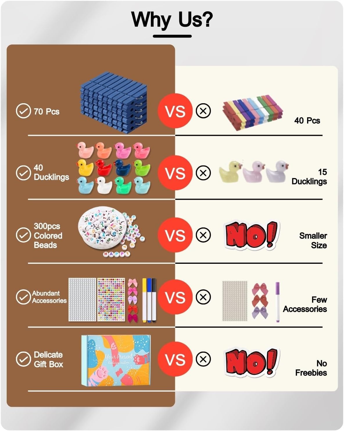• 🎯 Wide Usage – From Sidelines to Classrooms: 🏈Cheer Squads: Clip ducks to pom-poms, spell team mottos with beads. 🖼️ Home Décor: Hang photos, organize craft supplies, or decorate holiday wreaths. 🎪 Party Pros: Create custom banners, seal gift bags, or design themed centerpieces. 👩‍🏫 Classrooms: Display student artwork, teach color sorting, or craft friendship bracelets.