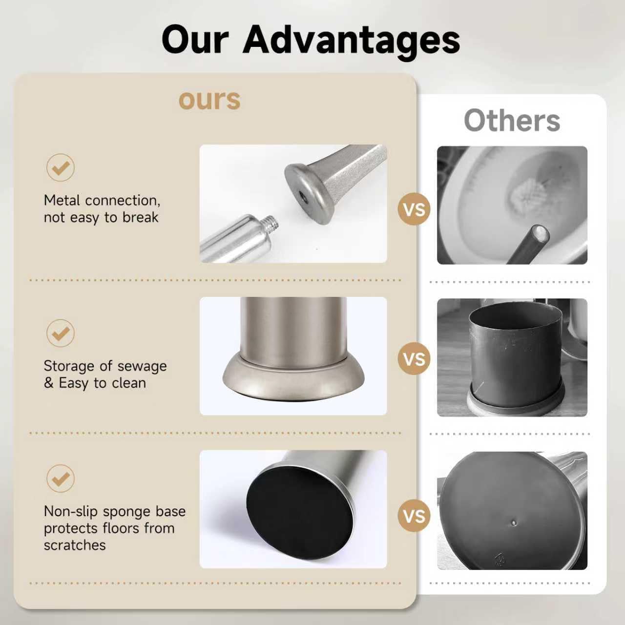 • 【Solid Toilet Brushes & Holders】This durable toilet bowl brushes boasts an integrated aluminum alloy handle design, stronger than plastic connections. The heavy duty toilet brush sturdy, thickened metal base ensures stability and longevity, making it resistant to tipping over.