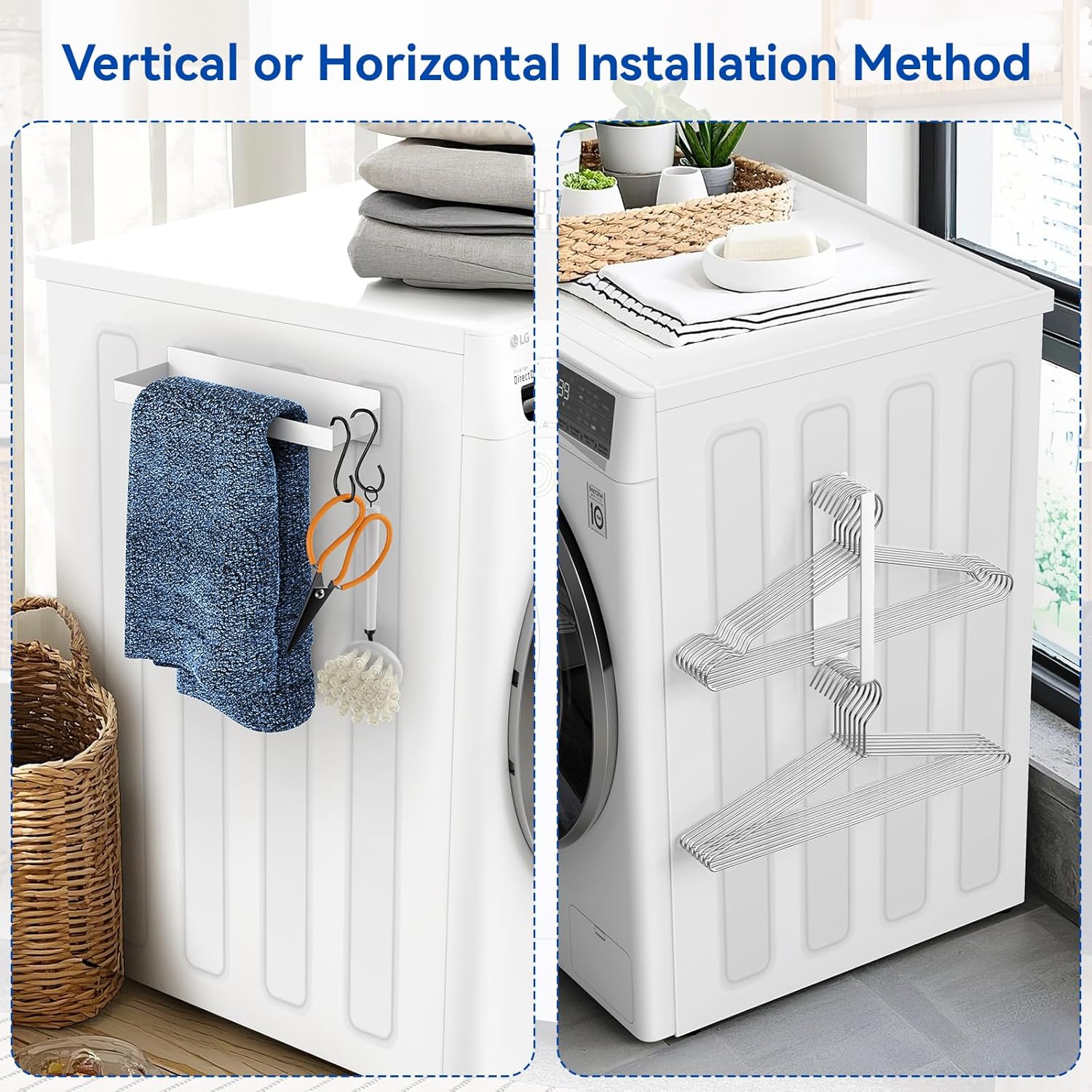 • Durable and Simple: The back is made of strong magnets and high-quality glue, and the magnetic strips will not fall off easily. The drying ball holder and hanger holder are made of high-quality metal materials with smooth paint, durable and rust-proof. Add a pleasant look to your laundry room and say goodbye to monotony.