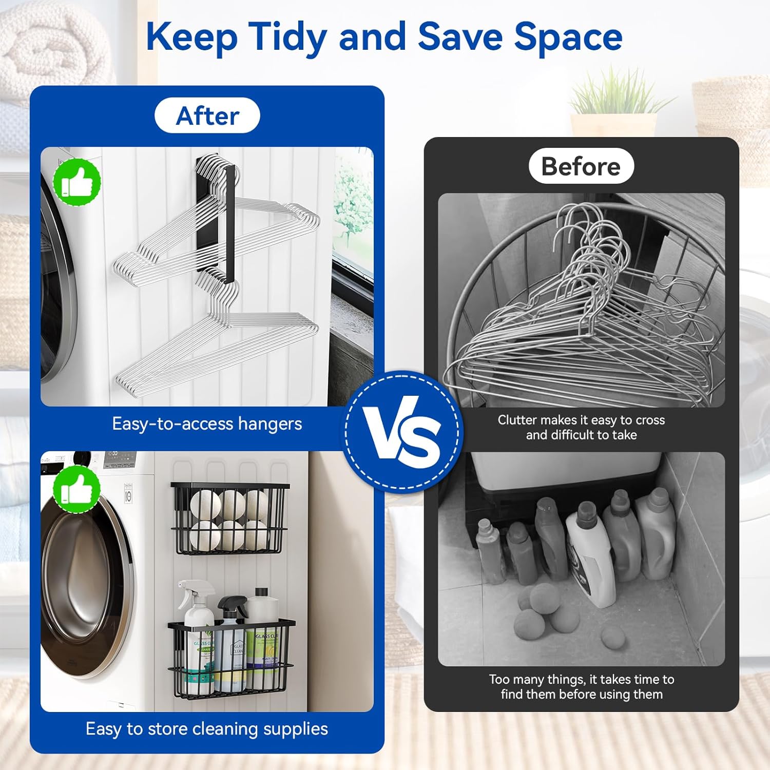 • Maximize Laundry Room Organization and Storage Space: The magnetic dryer ball holder and hanger organizer can be placed on the side or front of the dryer for easy to access and saving space on the laundry countertop. The small space in a small laundry room can also be reasonably utilized, and there will be no more messy placement and scattering.