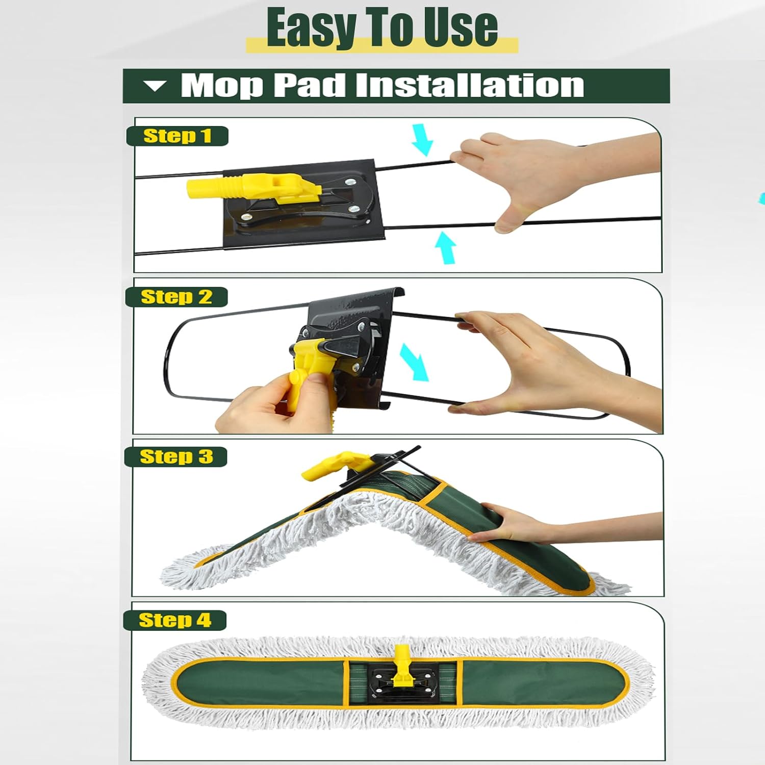 • Fit all kinds of floors - You can use this dust mop to clean tile floors, wooden floors, marble floors, office floors, restaurant floors, kitchen floors, bathroom floors, garages, warehouses and so on. Package including 2 pieces mop pads.