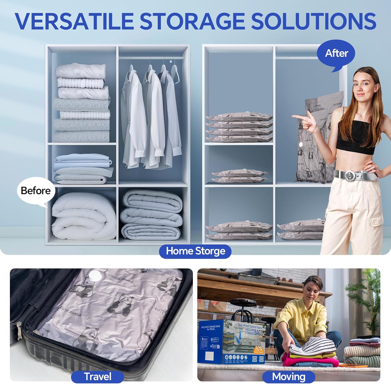 • MULTI-PURPOSE STORAGE SOLUTION: Whether for home storage bedding, blankets, comforters moving, or packing luggage and more, these extra thick heavy duty blanket vacuum storage bags jumbo offer reliable performance. A must-have vacuum storage solution for seasonal items or decluttering spaces efficiently
