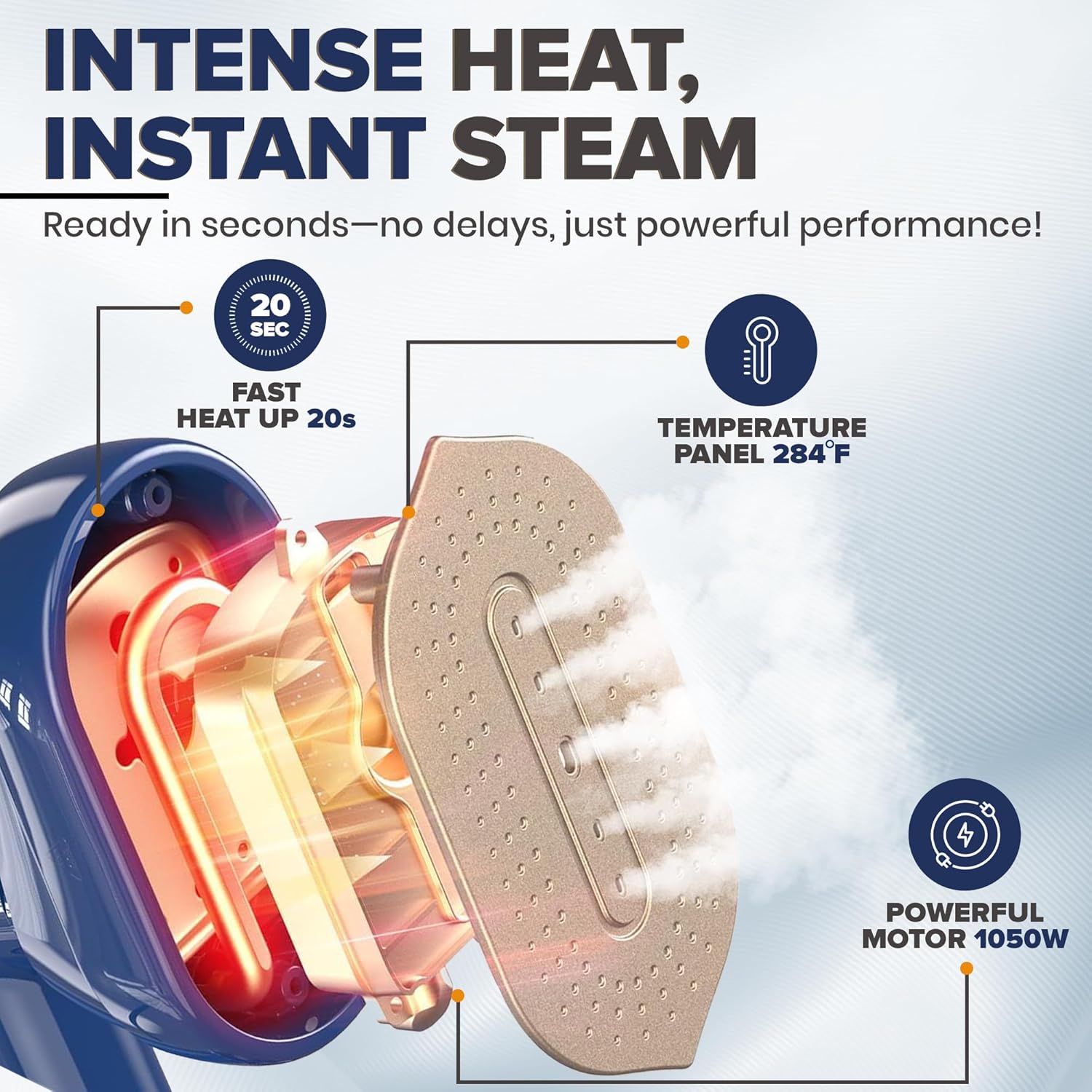 • 𝗙𝗮𝘀𝘁 & 𝗣𝗼𝘄𝗲𝗿𝗳𝘂𝗹 𝗪𝗿𝗶𝗻𝗸𝗹𝗲 𝗥𝗲𝗺𝗼𝘃𝗮𝗹 – Experience professional-grade steaming with 1050W of powerful steam output. Our high-performance clothing steamer instantly removes stubborn wrinkles, creases, and odors from various fabrics, including cotton, silk, linen, wool, and polyester, leaving your clothes fresh and smooth within seconds.