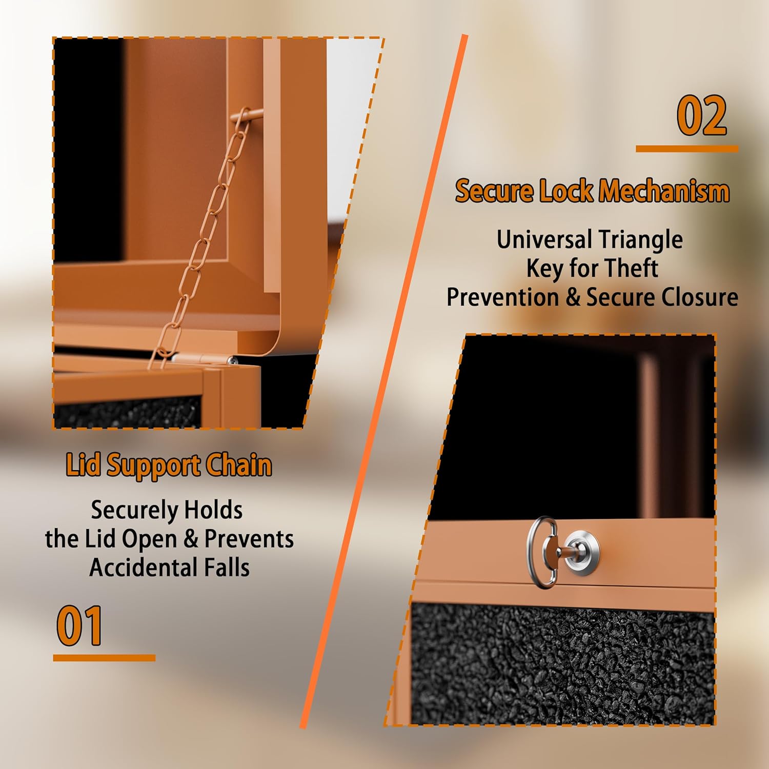 • 【Lockable outdoor Garbage Can with Secure Mounting】 Triangle-key lock prevents tampering, while pre-drilled holes and screws allow stable ground installation for permanent, theft-resistant placement.