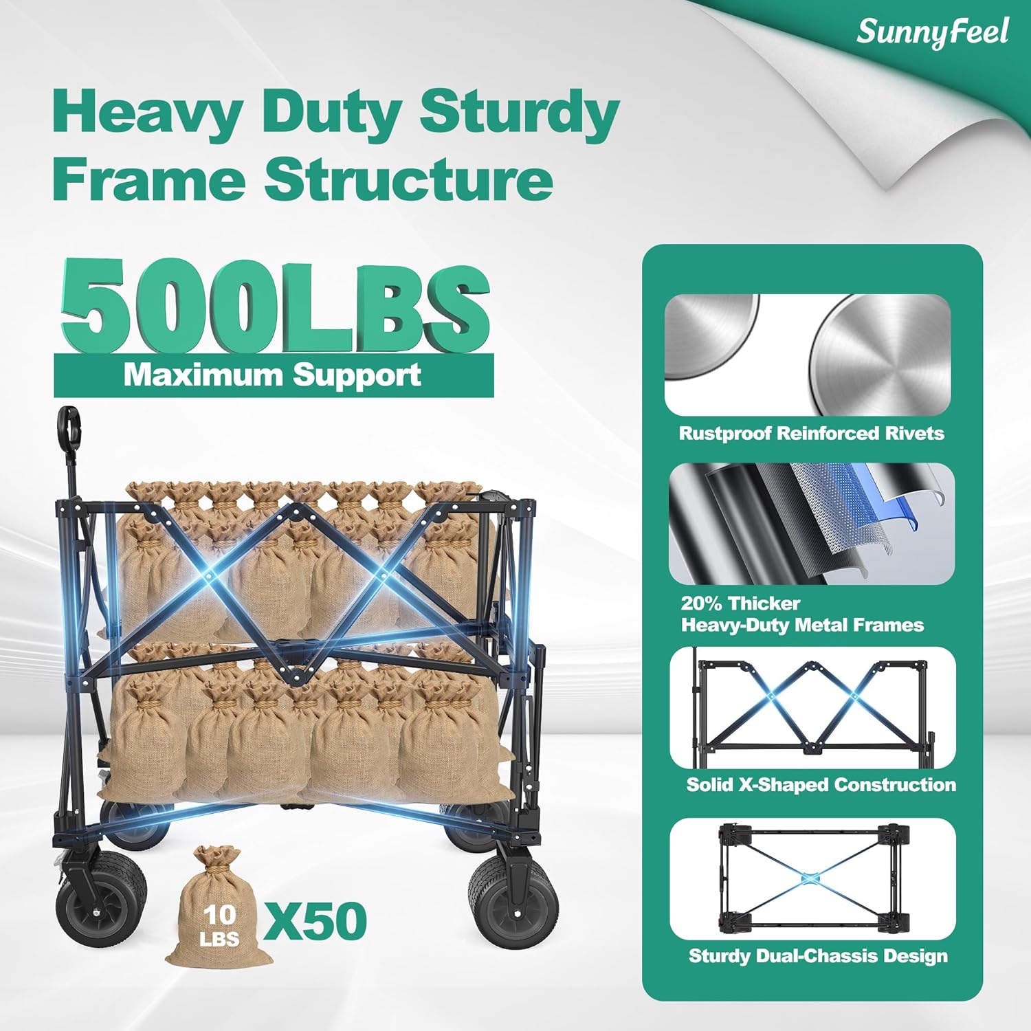 • Navigate through sandy beaches, rocky paths, or your own backyard with the cart's large, foldable beach wheels, designed specially to provide stability and ease over various terrains. Whether it's transporting gardening supplies or carrying picnic essentials, your items will rest secure and undisturbed during transit.