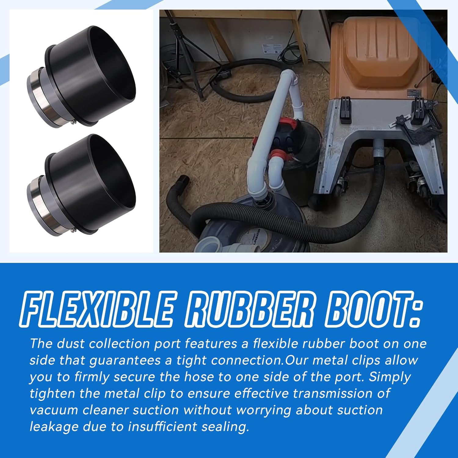 • FLEXIBLE RUBBER BOOT: The dust collection port features a flexible rubber boot on one side that guarantees a tight connection.Our metal clips allow you to firmly secure the hose to one side of the port. Simply tighten the metal clip to ensure effective transmission of vacuum cleaner suction without worrying about suction leakage due to insufficient sealing