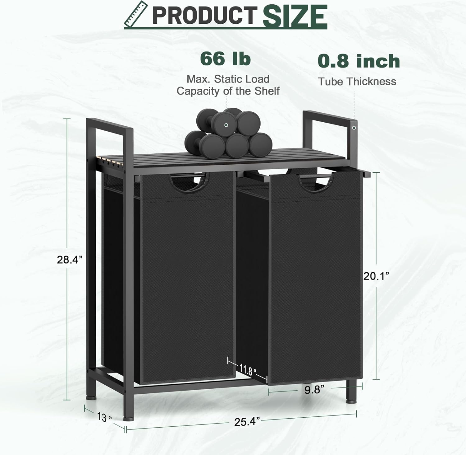 • 2 Removable Bags - The laundry hamper has a total capacity of 20 gallons, with each liner holding 10 gallons. Its 2 compartment design enables you to organize your laundry by type and separate light laundry from different family members.
