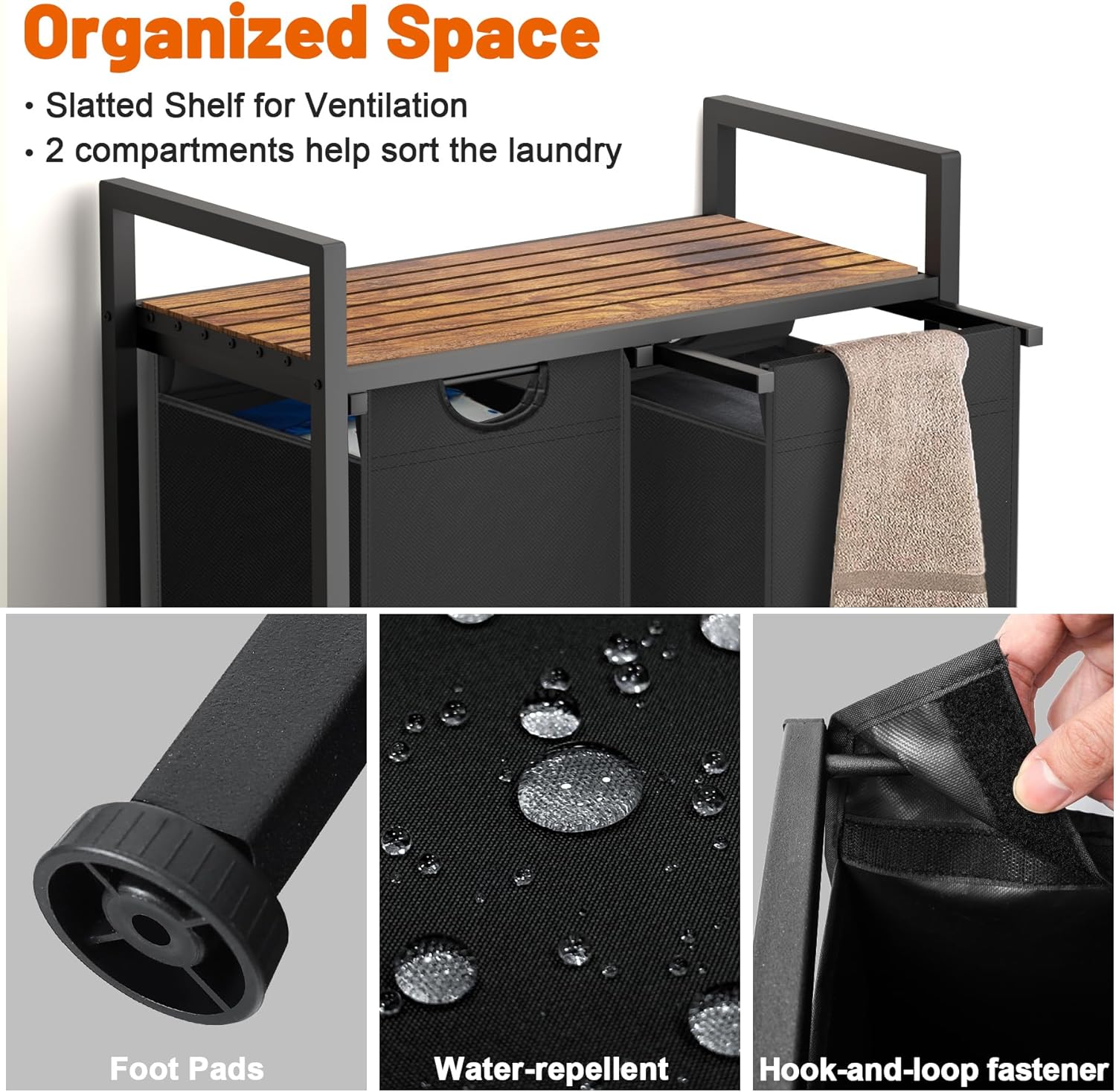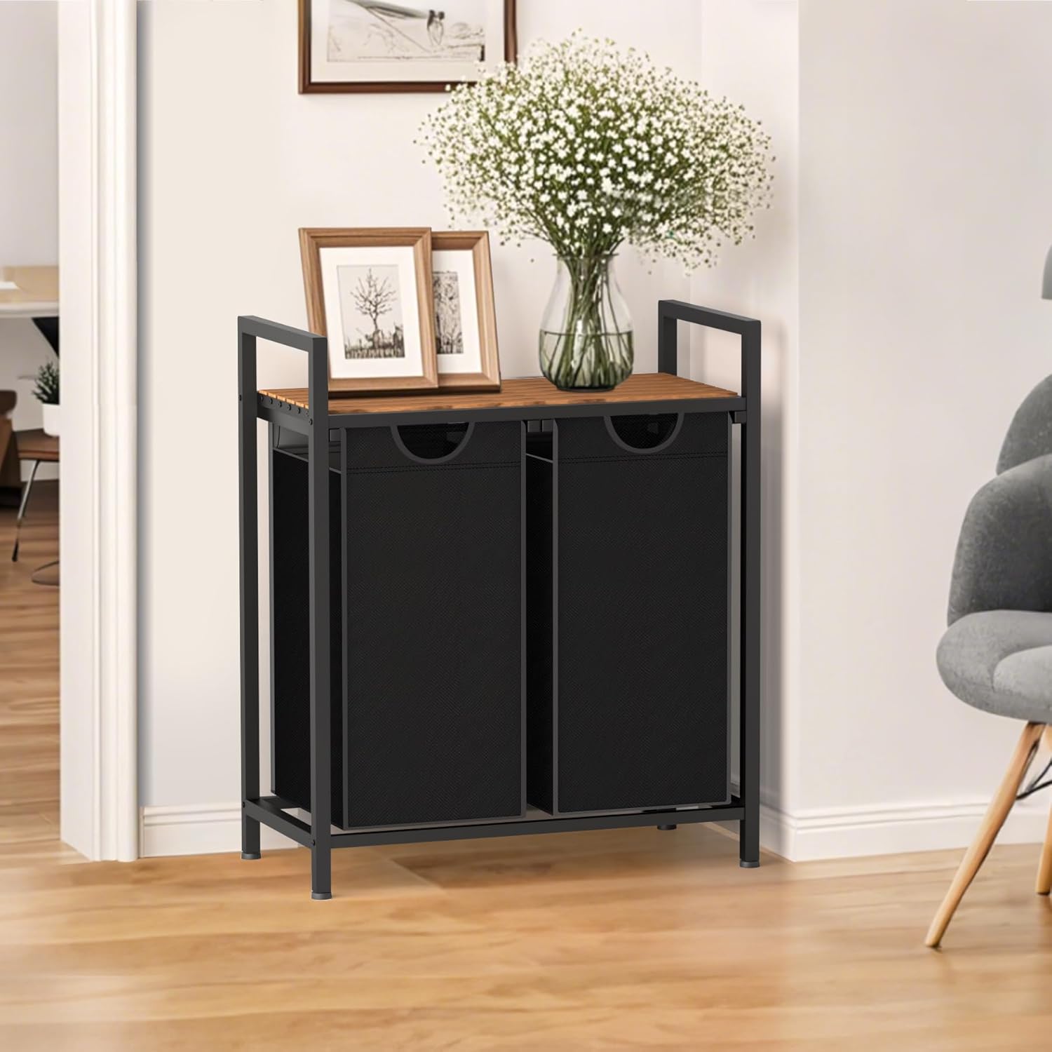 Laundry Hamper, Laundry Sorter with 2 Pull-Out Removable Oxford Fabric Bags Cloth Laundry Basket 2 x 10 Gallons (Black and Rustic Brown)