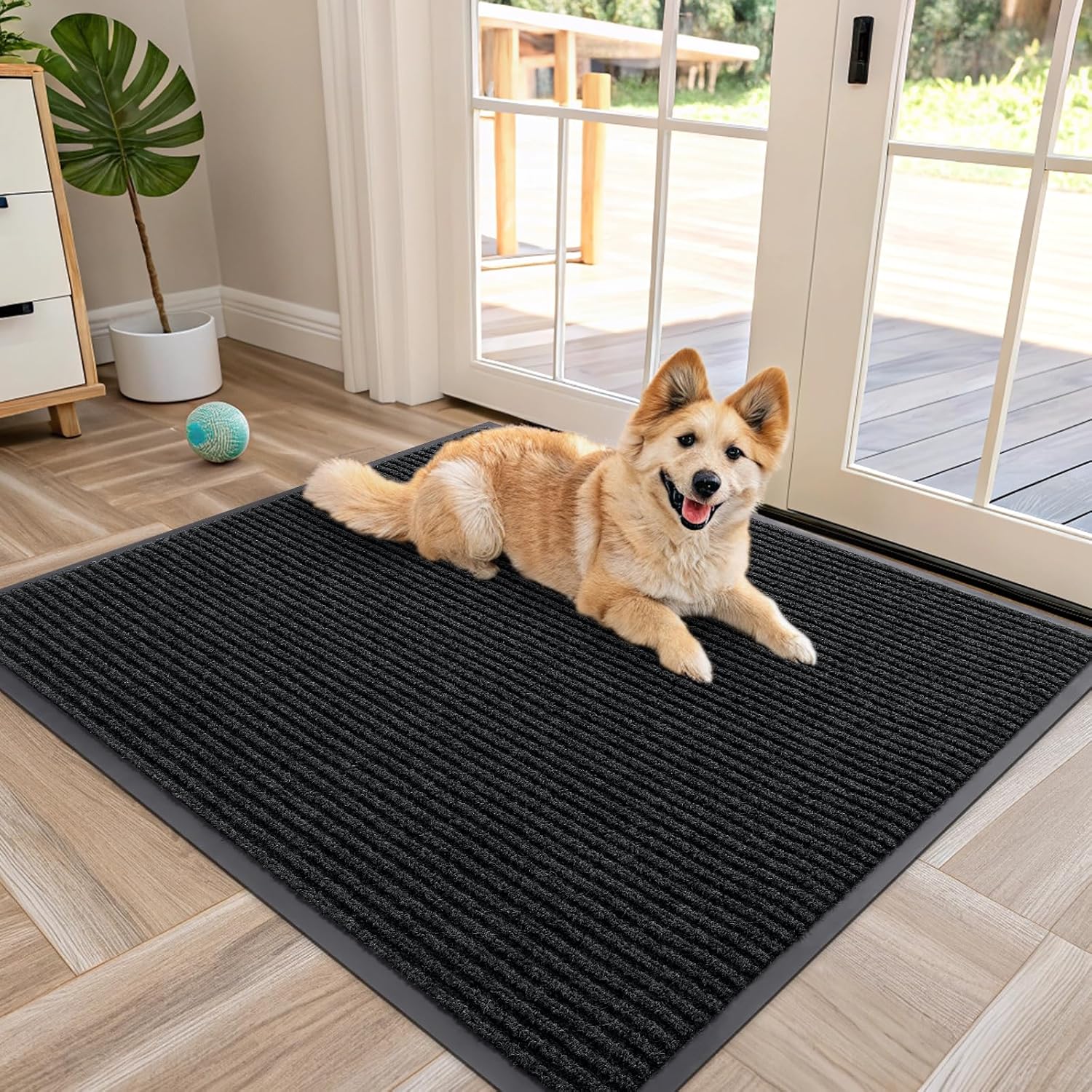 OLANLY Front Door Mat Indoor Outdoor Entrance, Waterproof Heavy Duty Doormat, Fade Resistant, Low Profile, Easy Clean Patio Porch Welcome Floor Mats for Entry, 40x32, Black
