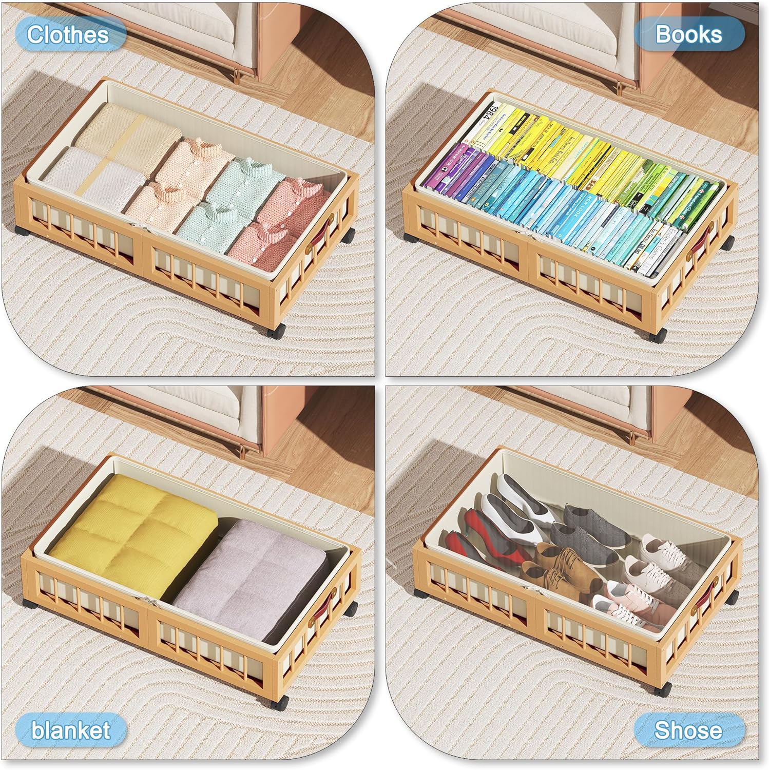 • 【Stylish Look】 Natural Bamboo material make the rolling under bed storage look simple and elegant. 2 PACK Under bed Storage are great for bedroom, living room, dorm and basement. Choose it to make your tiny space a new look!