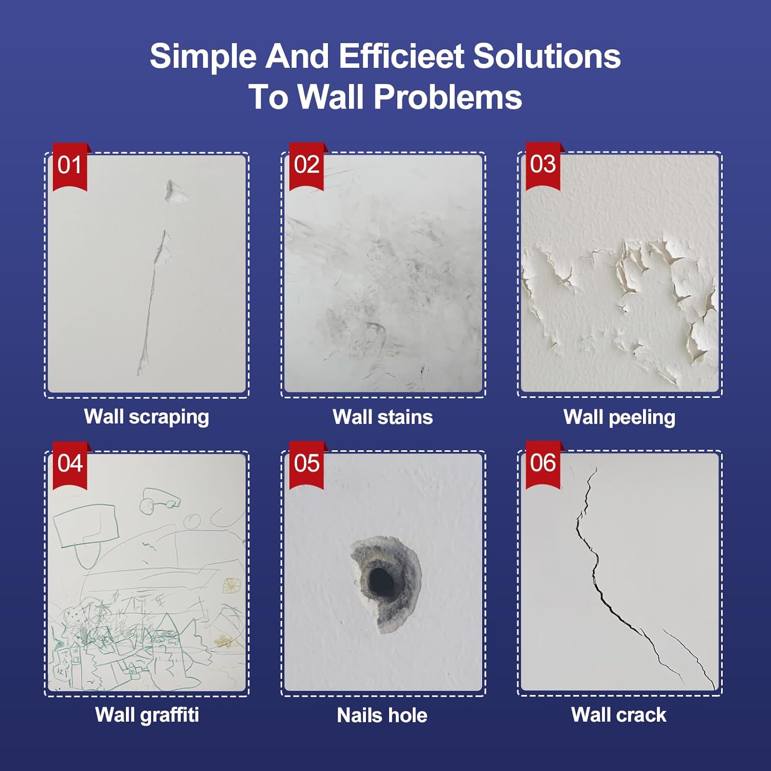 • ​Versatile Surface Fixer:Repairs dents, cracks, nail holes on many surfaces including drywall, plaster, wood, and stucco. Works seamlessly for household walls or professional renovation projects.