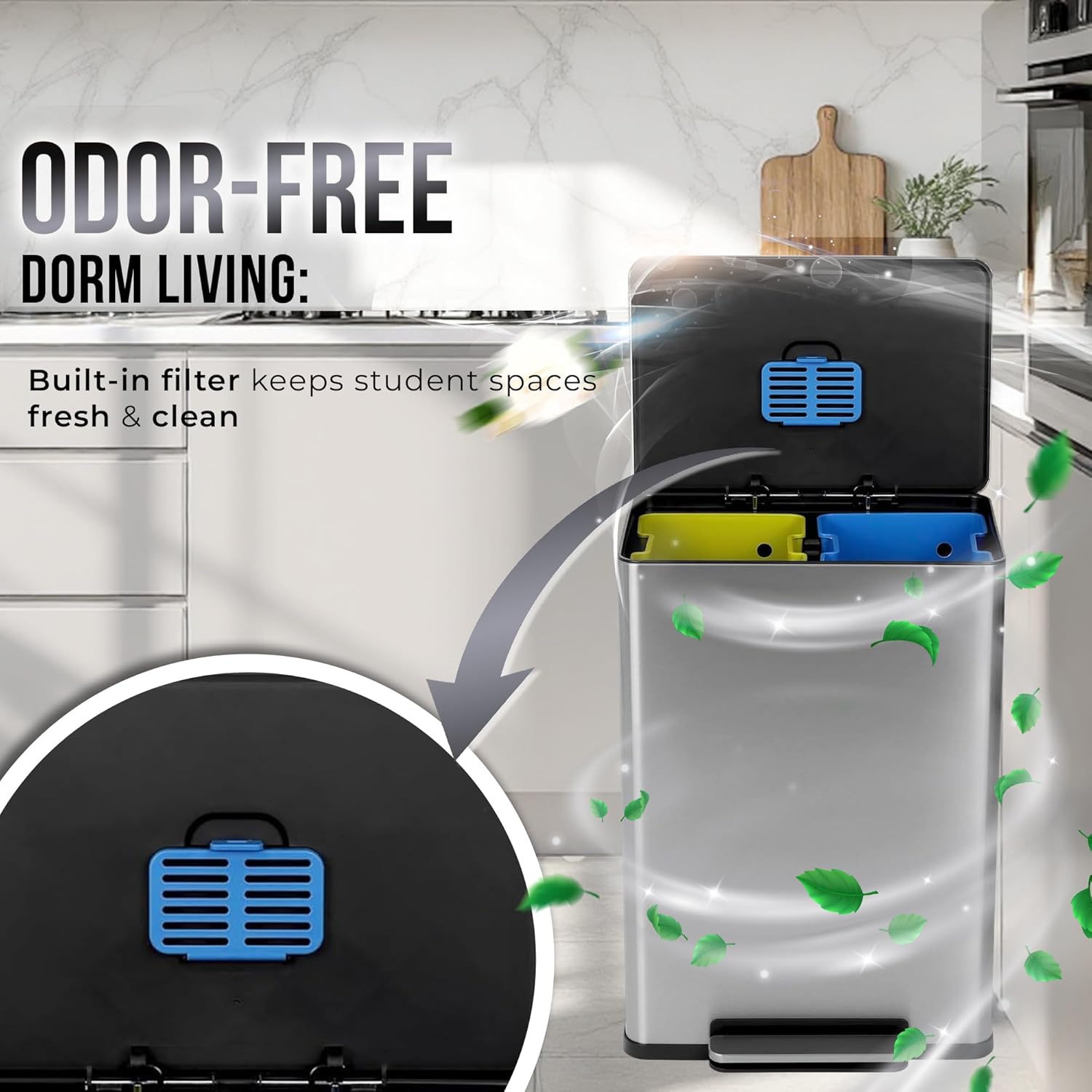 • HIGH CAPACITY WASTE AND RECYCLING SOLUTION: Color coded liners in Blue (30L) and Green (30L) allow for easy sortation of waste and recycling, without sacrificing waste capacity, and fit standard liners using bag cinch.