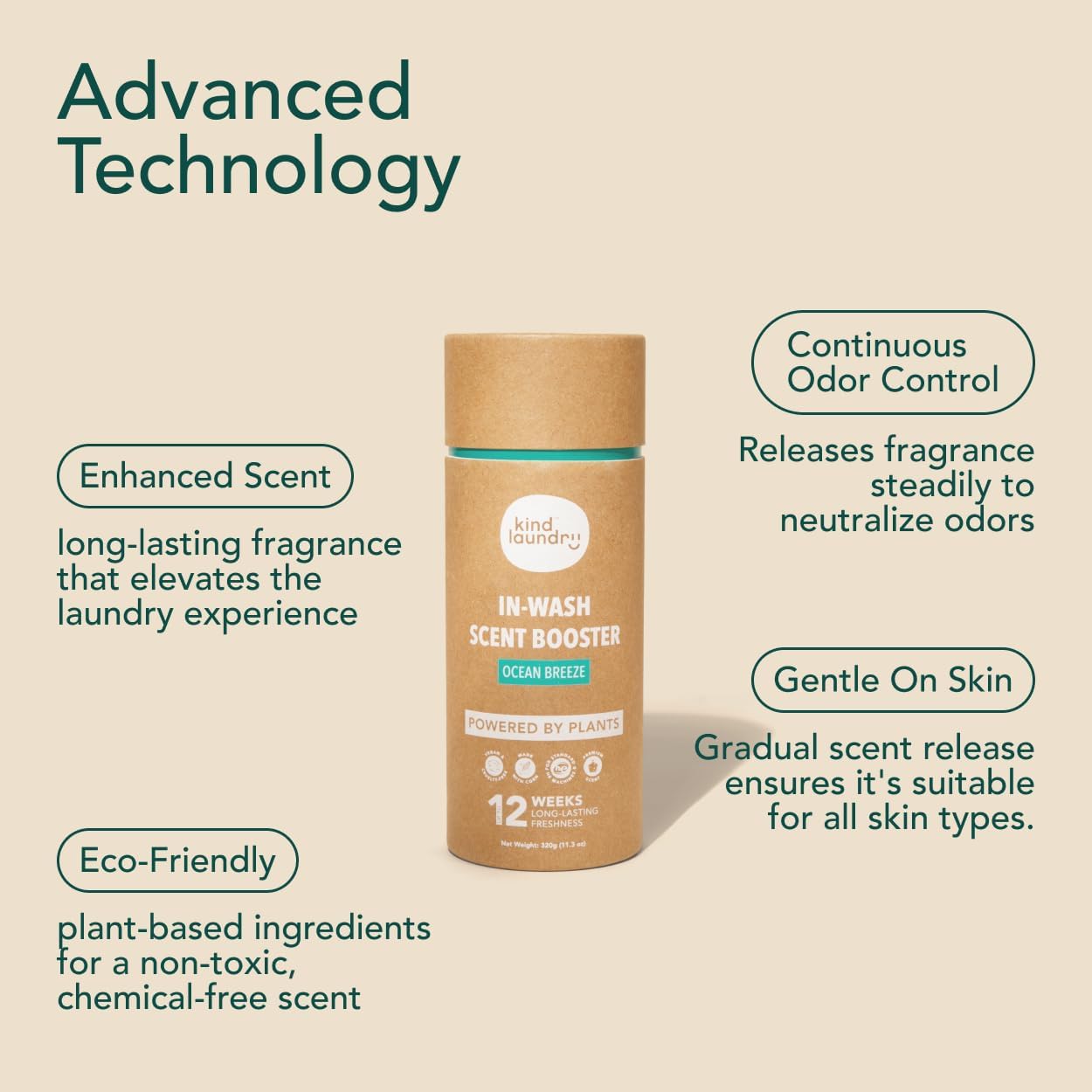 Kind Laundry In Wash Scent Booster Beads - Ocean Breeze - 100% Plant Based - Natural Laundry Booster Beads & Smell Deodorizer - Environment Friendly Odor Eliminator for Clothes (320 grams)