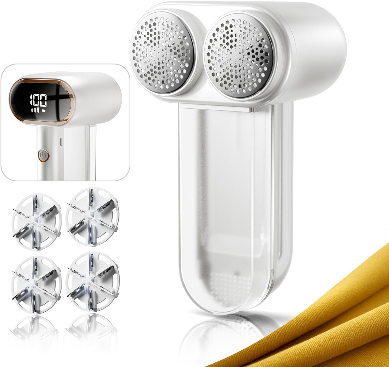 Dual-Head Fabric Shaver, Rechargeable Electric Lint Remover, 3-Speed Lint Shaver & 165ml Large Capacity Dust Box, Fuzz Remover for Wool, Coat, Couch, Furniture