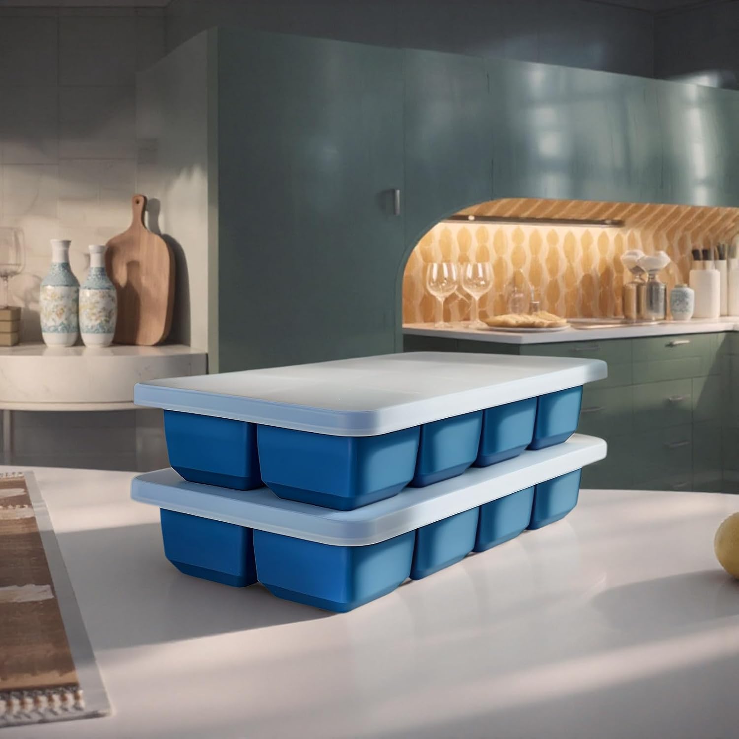 • SPACE-SAVING ICE TRAY WITH ODOR-PROOF LID: The tightly fitting silicone lid seals in freshness and prevents odors from seeping into the ice. This large ice cube mold is stackable, maximizing your freezer space while ensuring fresh, clean-tasting ice cubes every time.