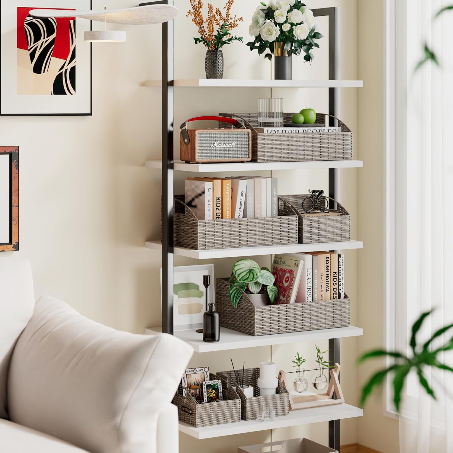 • STURDY AND DURABLE: The durable wicker storage bins are hand-woven by seasoned artisans over a rugged iron frame. The wicker storage baskets can be used for a long time without deformation. Simple and easy to clean the pantry baskets, all you need to do is wipe it with a damp cloth.