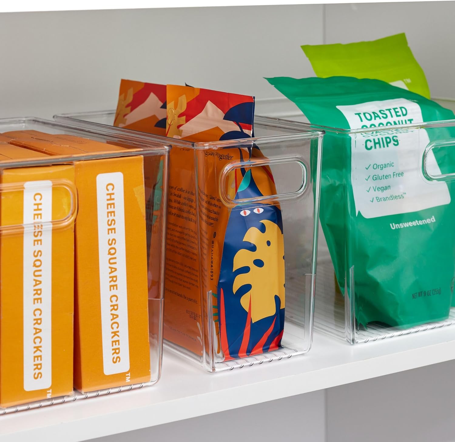 • OPEN DESIGN WITH HANDLES - These grab-and-go bins feature an open-top design that grants immediate reach-in access, so finding what you need is quick and easy; Combine multiple units side by side for custom storage, creating a more thoughtful space for how you live; Finished with integrated handles, these storage bins are easy to transport wherever you need; From cabinets to countertops, keep clutter under control by conveniently storing an assortment of kitchen or pantry essentials