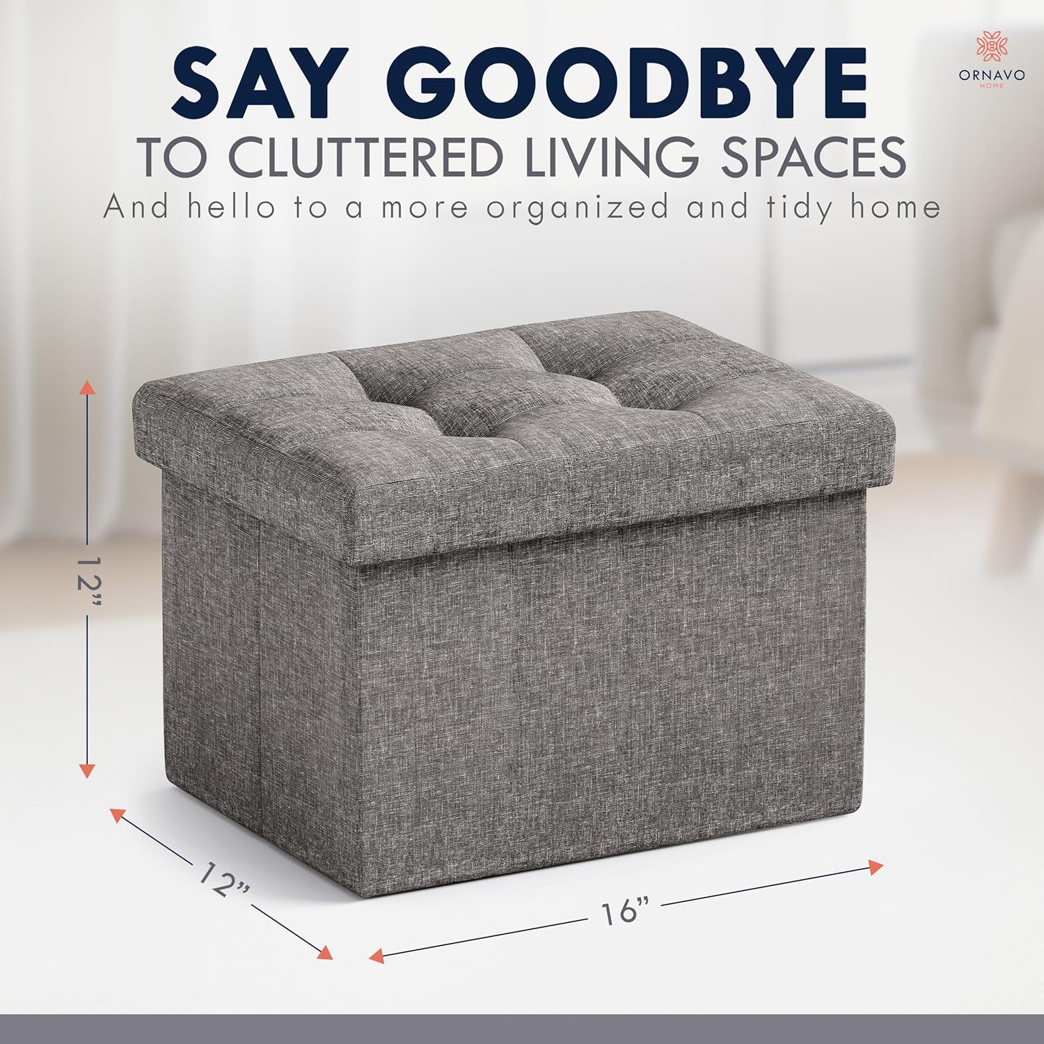 Ornavo Home Small Storage Ottoman Foldable Collapsible Rectangle Linen Ottoman Foot Rest Stool Seat, for Living Room, Bedroom, Home Office, Dorm - 12 x 16 x 12, Dark Gray