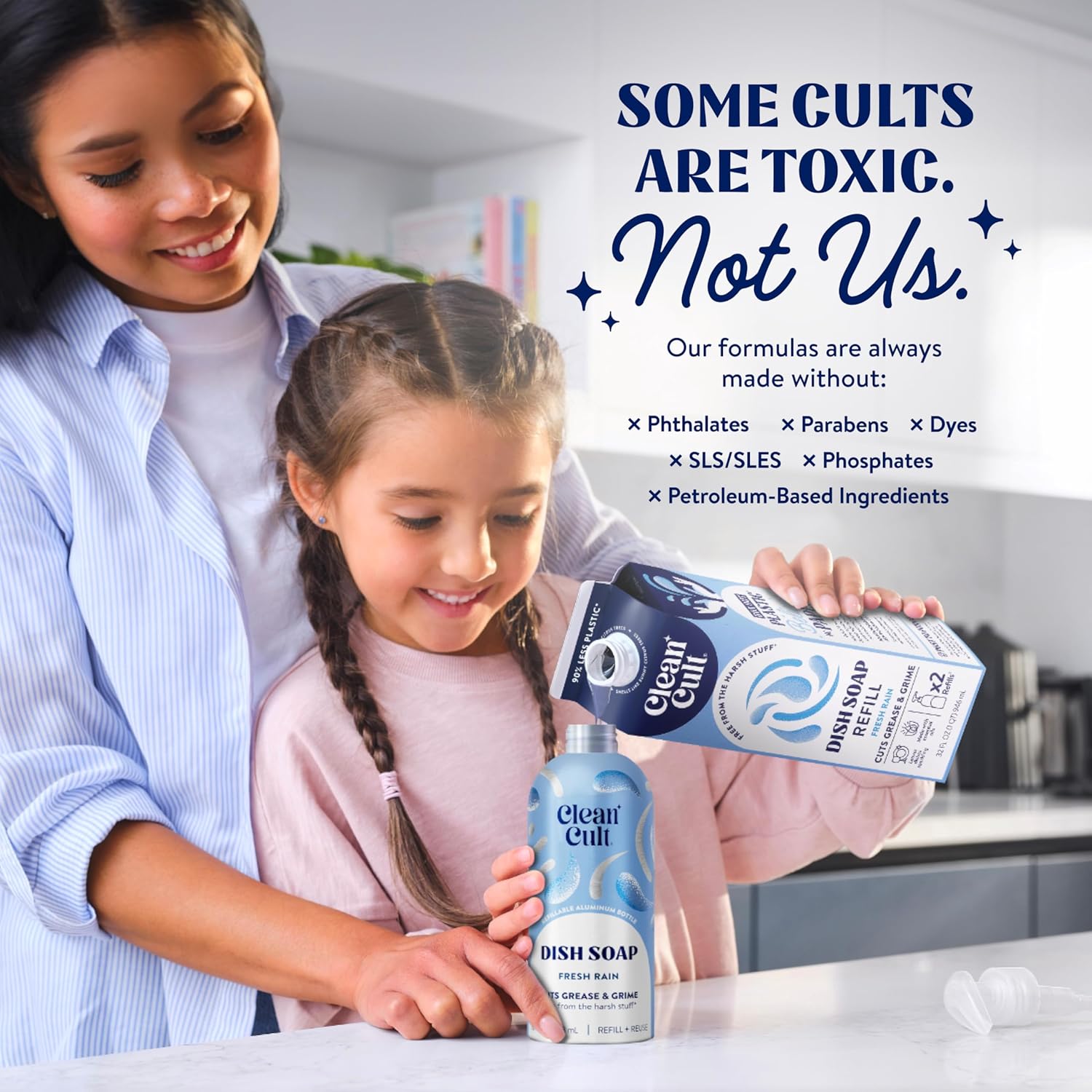 • A CLEANER KIND OF CULT: We only use the good stuff to keep your dishes clean and your skin healthy. Our natural dish soap formulas are always made without phthalates, phosphates, petroleum based ingredients, dyes, SLS, & SLES.