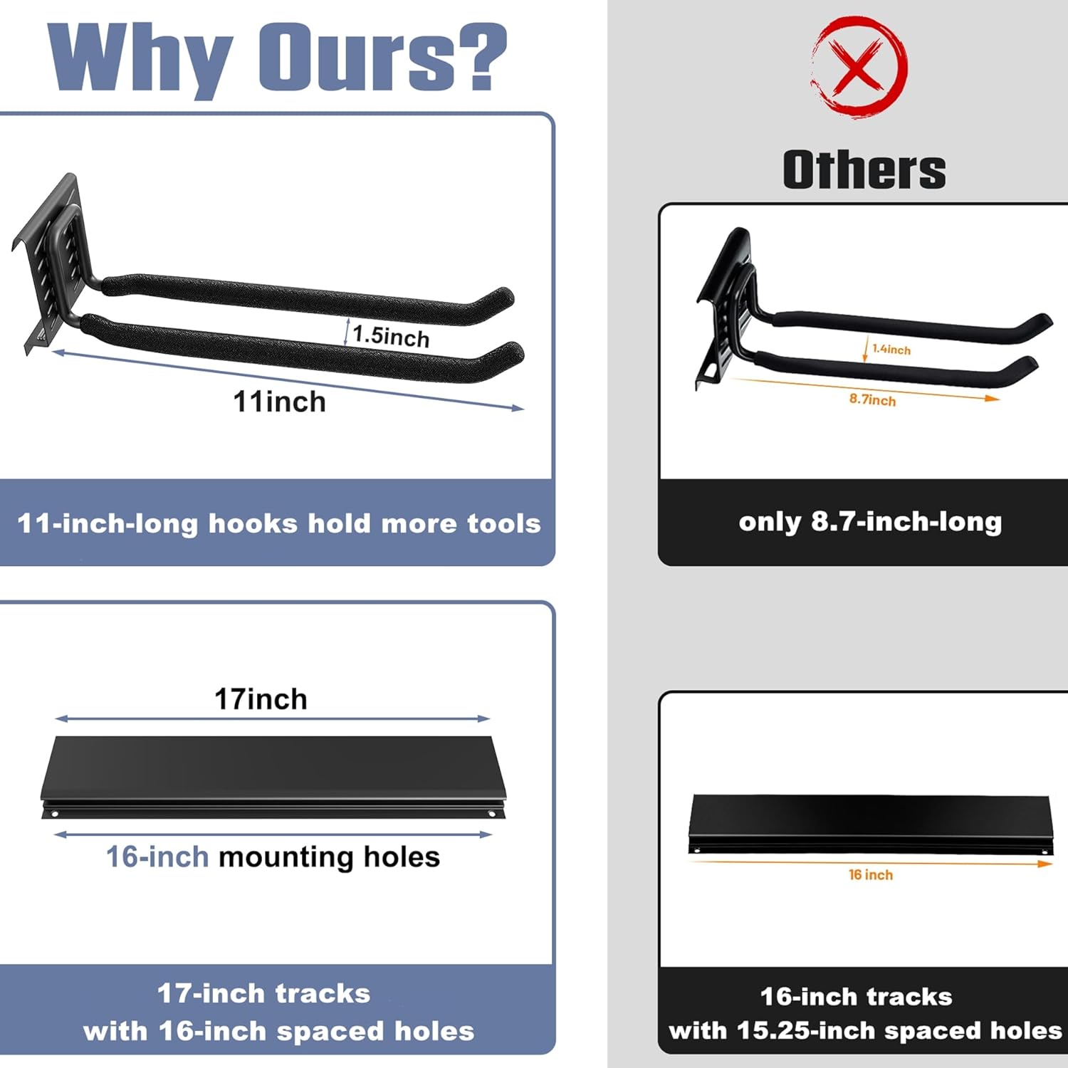 • Flexible and Adjustable Storage: Includes 4 tracks, allowing you to easily position hooks to create a customized setup that suits your specific storage needs