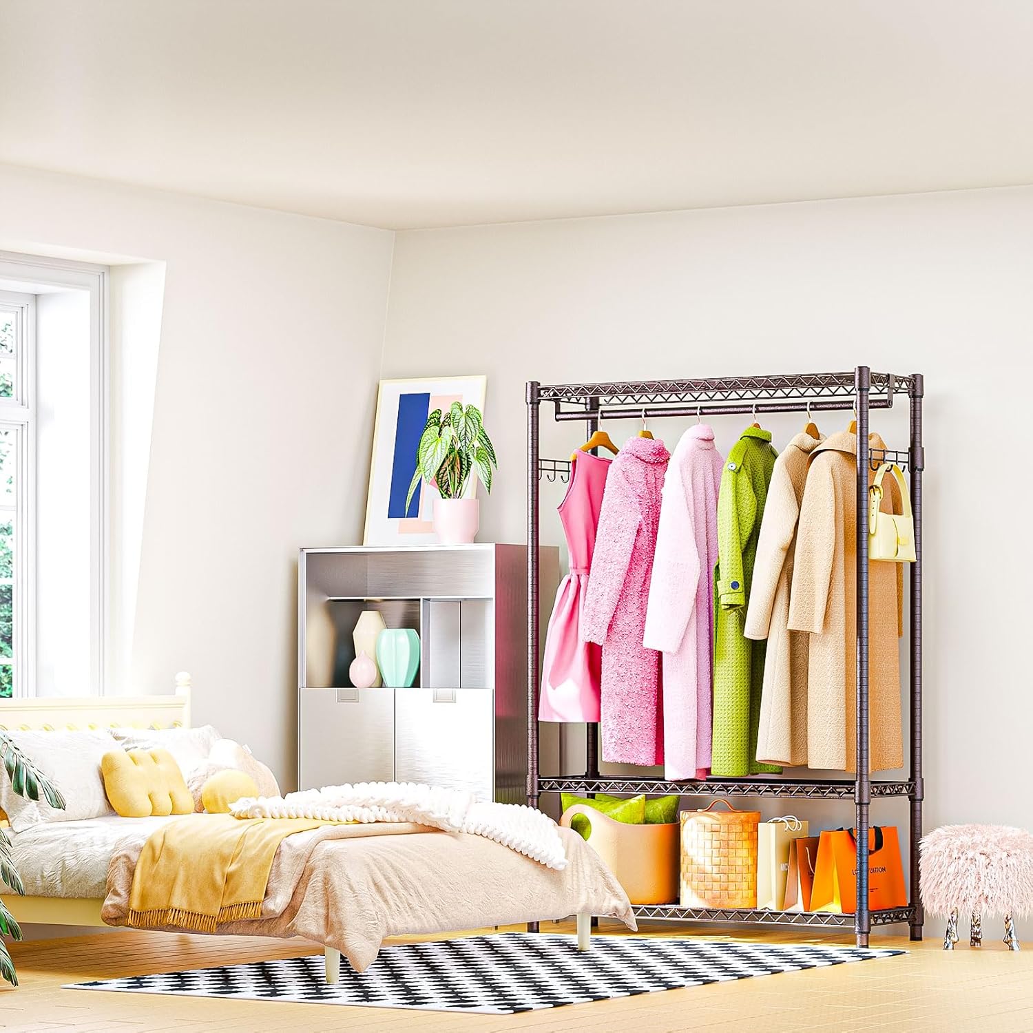 • Stable and Versatile Design : This freestanding garment rack offers exceptional stability while providing ample storage for clothing, shoes, dresses, and more
