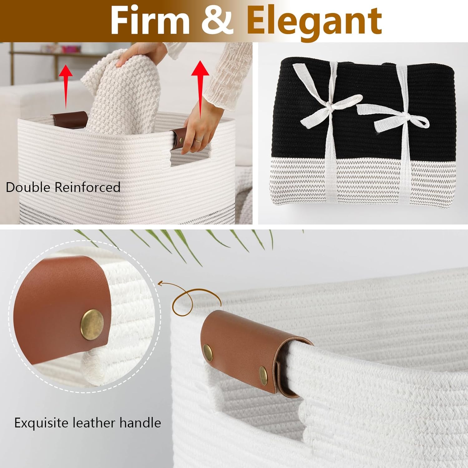 • Natural Handmade & Unique Design: The special hand-woven design makes the style of our blanket basket simpler, the classic color blend seamless with any room decor. The elegant leather handles not only take care of your hands but also add a distinctive highlight to our large baskets