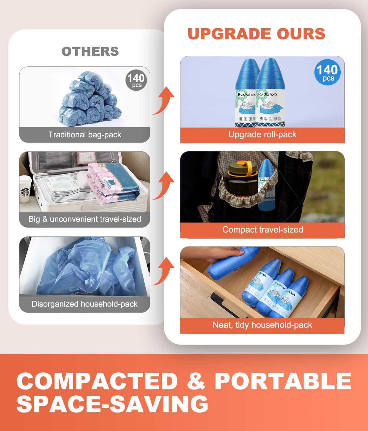 • Upgrade Roll-Pack Design: The shoe booties disposable are portable & space-saving; Featuring a perforated line for effortless separation, you can access shoe protector covers quickly; Carry shoe covers disposable with you for instant use in any situation