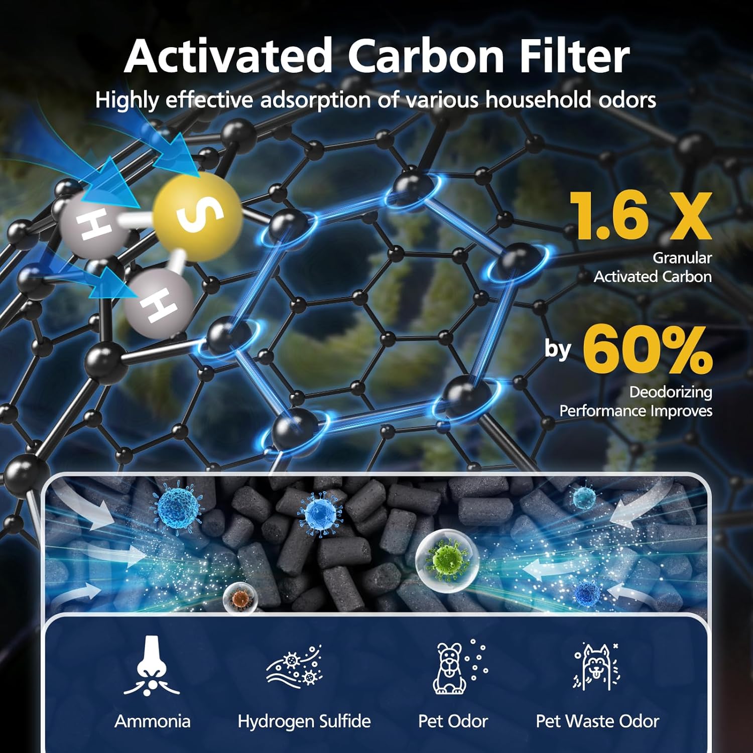 • 【Pet Care Filter】This HP152HH filter is customized for pet-loving families to promote harmonious coexistence between humans and pets. It can effectively attach ammonia, pet odors, pet waste odors and more. Let you say goodbye to pet odor troubles and create a fresh, pet-friendly living environment.