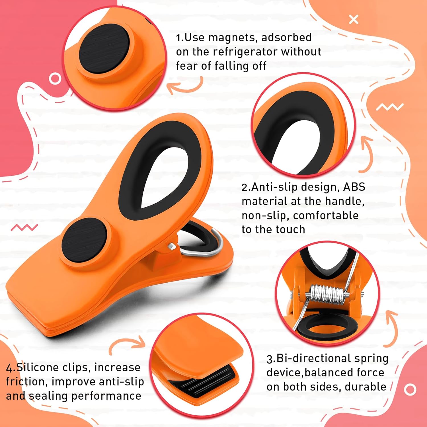 • Magnetic design: these chip bag clips are designed with a magnet on the back, which allow you to stick it on refrigerator, blackboard, glass and other surfaces, easily display your photo, daily schedule, artwork, memo notes and other small items, not easy to slip or fall off