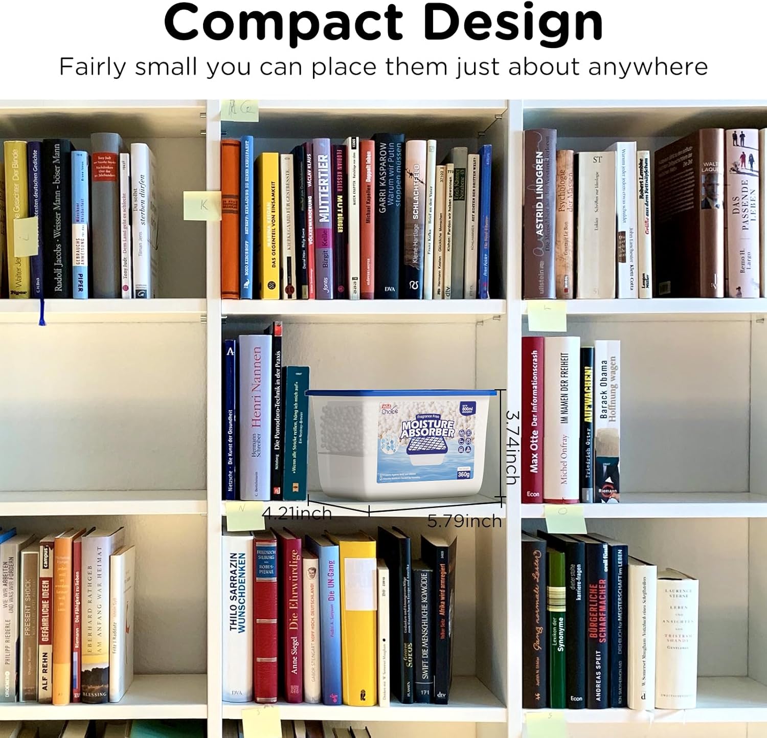 • Unscented & Extra-Large 800ml Capacity: This moisture absorber is completely fragrance-free, ensuring it won't have any unpleasant scents around you. With an 800ml collecting capacity, this moisture absorber offering extended use and fewer replacements for long-lasting dryness.