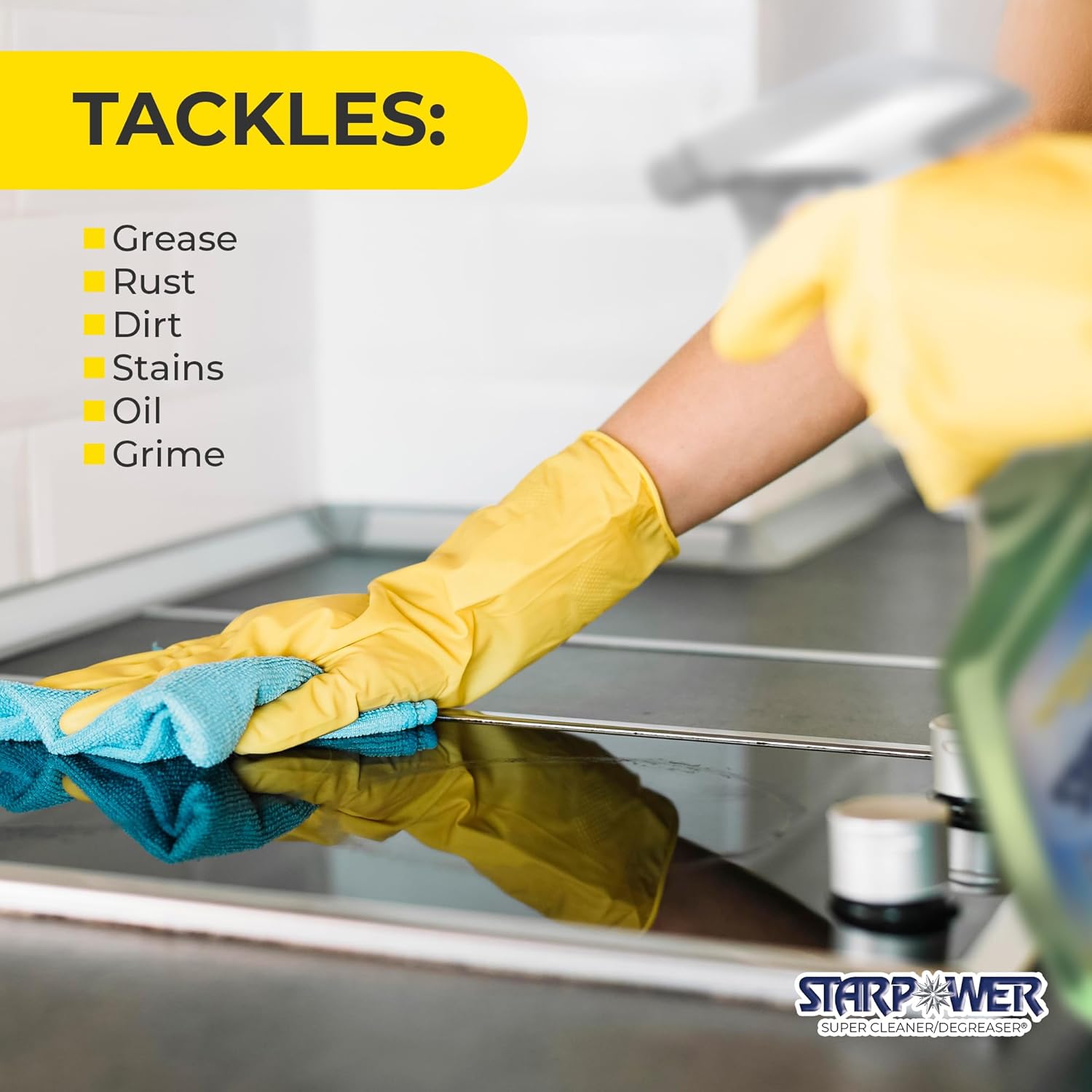 • ULTIMATE MULTI-PURPOSE MULTI-SURFACE POWER: Simplify your routine with STARPOWER, the ultimate universal cleaner degreaser that replaces multiple cleaning supplies, tackling grease, dirt, stains, oil, and grime throughout your home or workplace