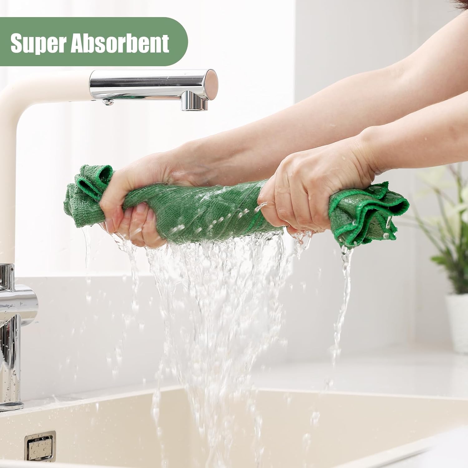 Homaxy Microfiber Kitchen Towels and Dishcloths Set, 16 Pack Soft and Absorbent Dish Hand Towels Bulk, 28 x 16 Inch & 12 x 12 Inch Quick Drying Rags for Washing Dishes, Grass Green