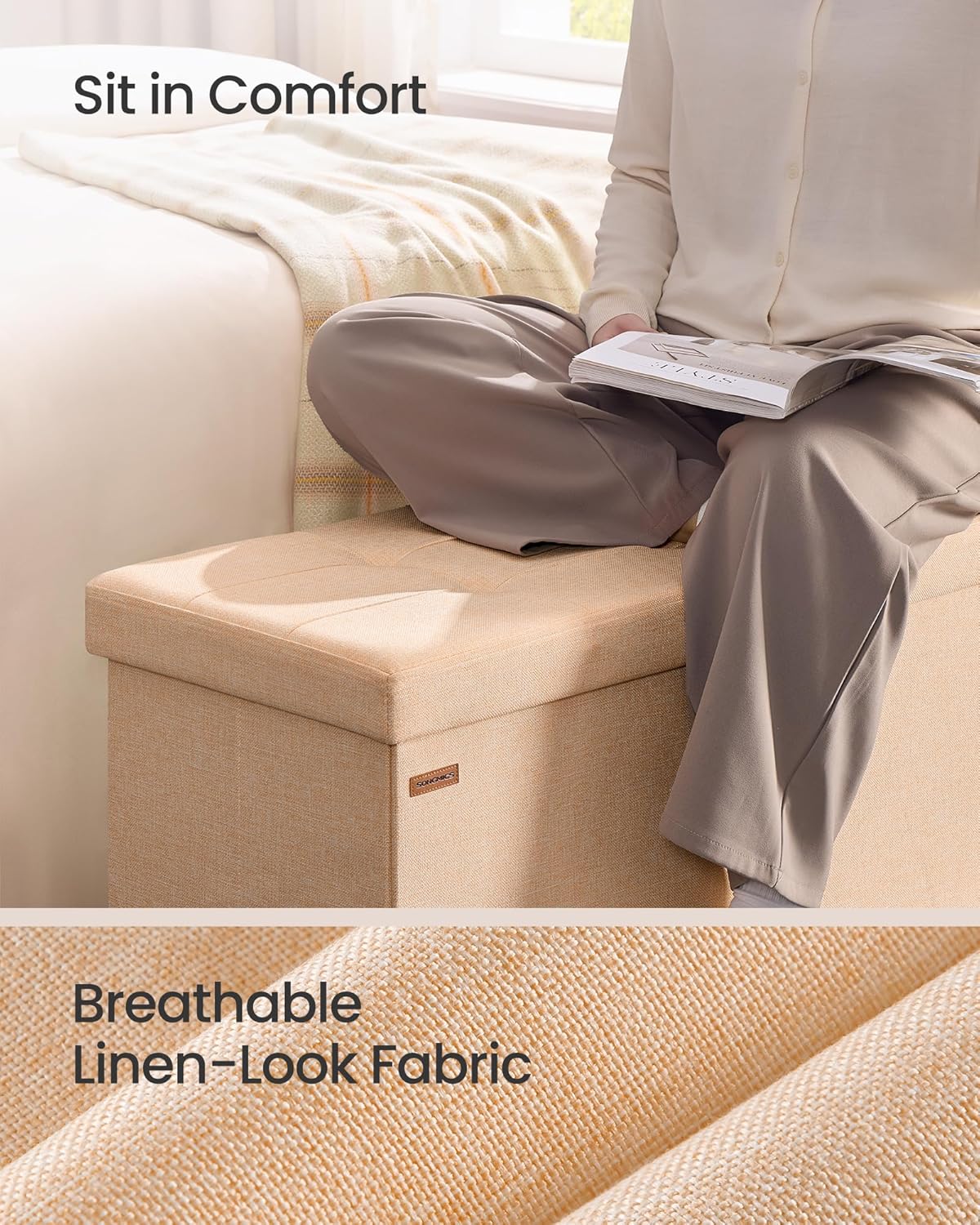 • Top Material Type Linen-Look Fabric : Base Type Storage