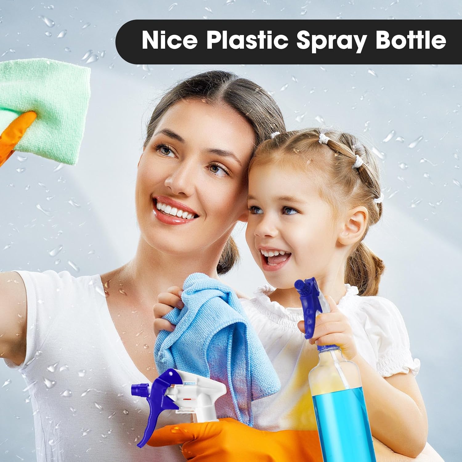 Eccliy 12 Pcs 16 Oz Plastic Spray Bottle, Adjustable Empty Reusable Sprayer for Cleaning, Planting, Water, Bathroom and Kitchen, BBQ, Commercial and Residential(Blue,Clear)