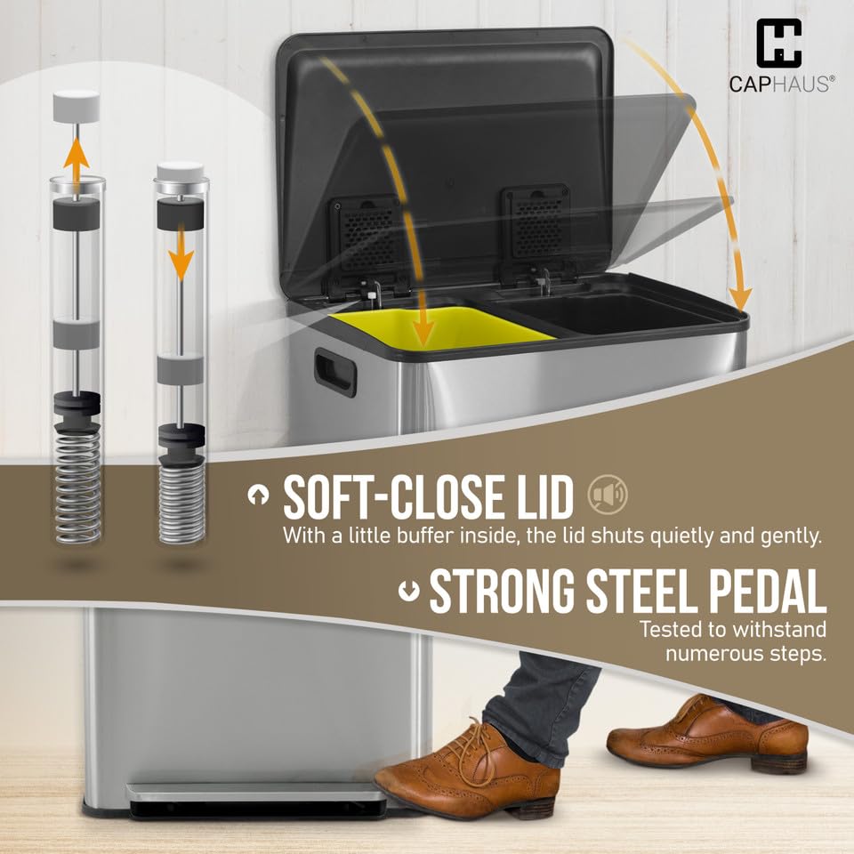 • Efficient Waste Separation: Our dual trash can has separate bins for trash and recycling, with removable bins for easy maintenance; with a capacity 30L + 30L (2 x 8 Gallon), it saves space and suits both residential and commercial use