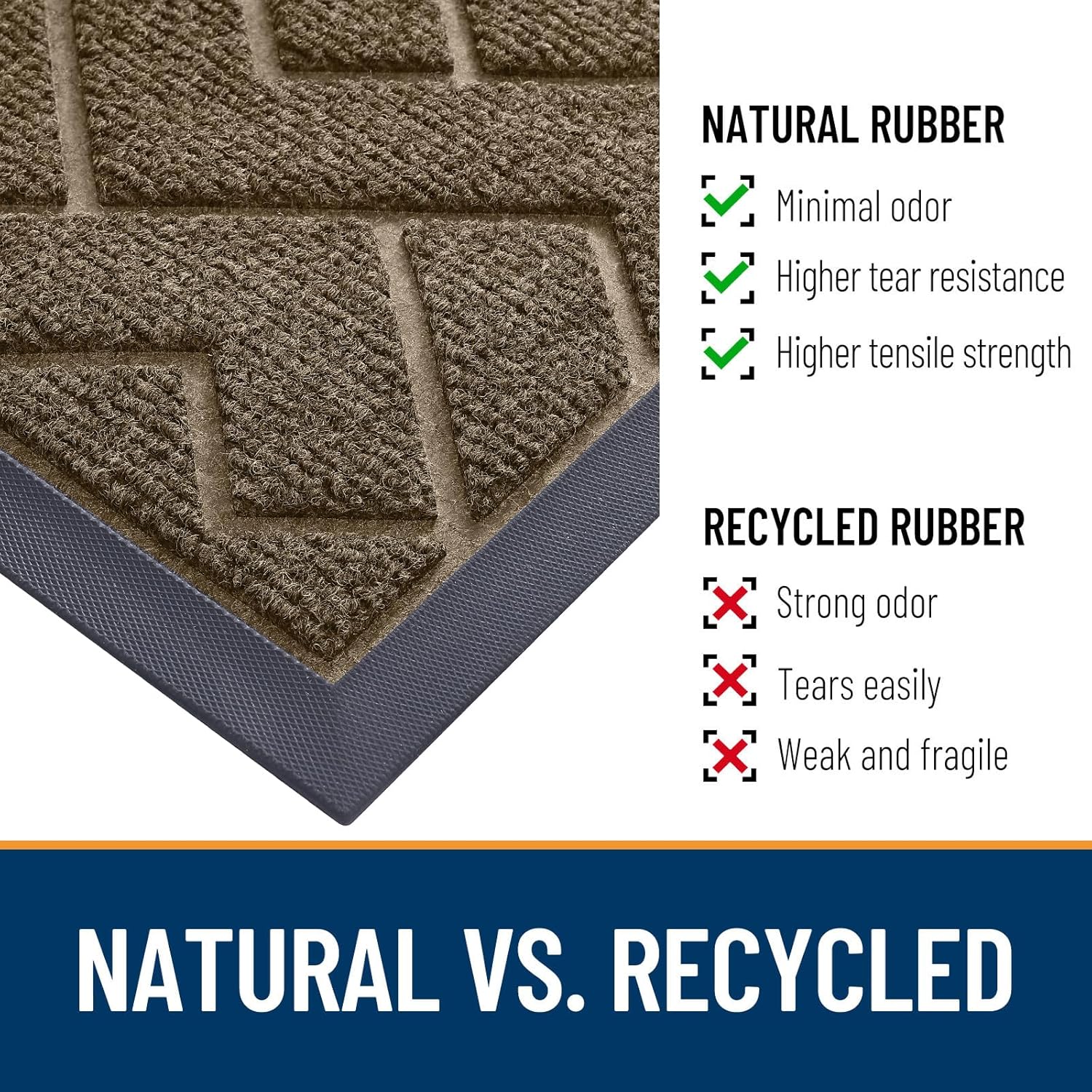 • [STURDY NATURAL RUBBER BACKING] The OLANLY heavy-duty door mat features an ultra-thin design, allowing it to effortlessly glide under most doors without jamming or curling. Crafted with a sturdy natural rubber backing, our product offers higher tensile strength, increased tear resistance, and less odor compared to synthetic rubber.
