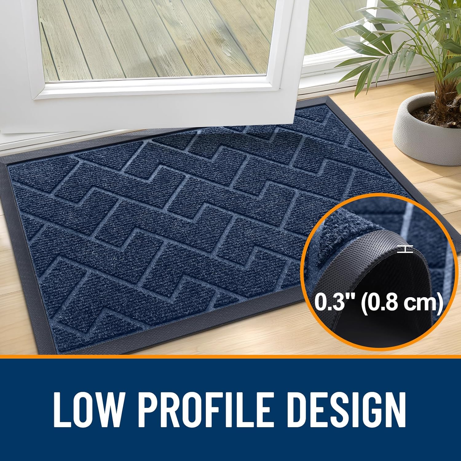 OLANLY Front Door Mat Indoor Outdoor Entrance, Waterproof All-Season, All-Weather Doormat, Sturdy Natural Rubber, Low Profile, Easy Clean Patio Porch Entryway Mat, Herringbone Brick (Blue, 59x23)