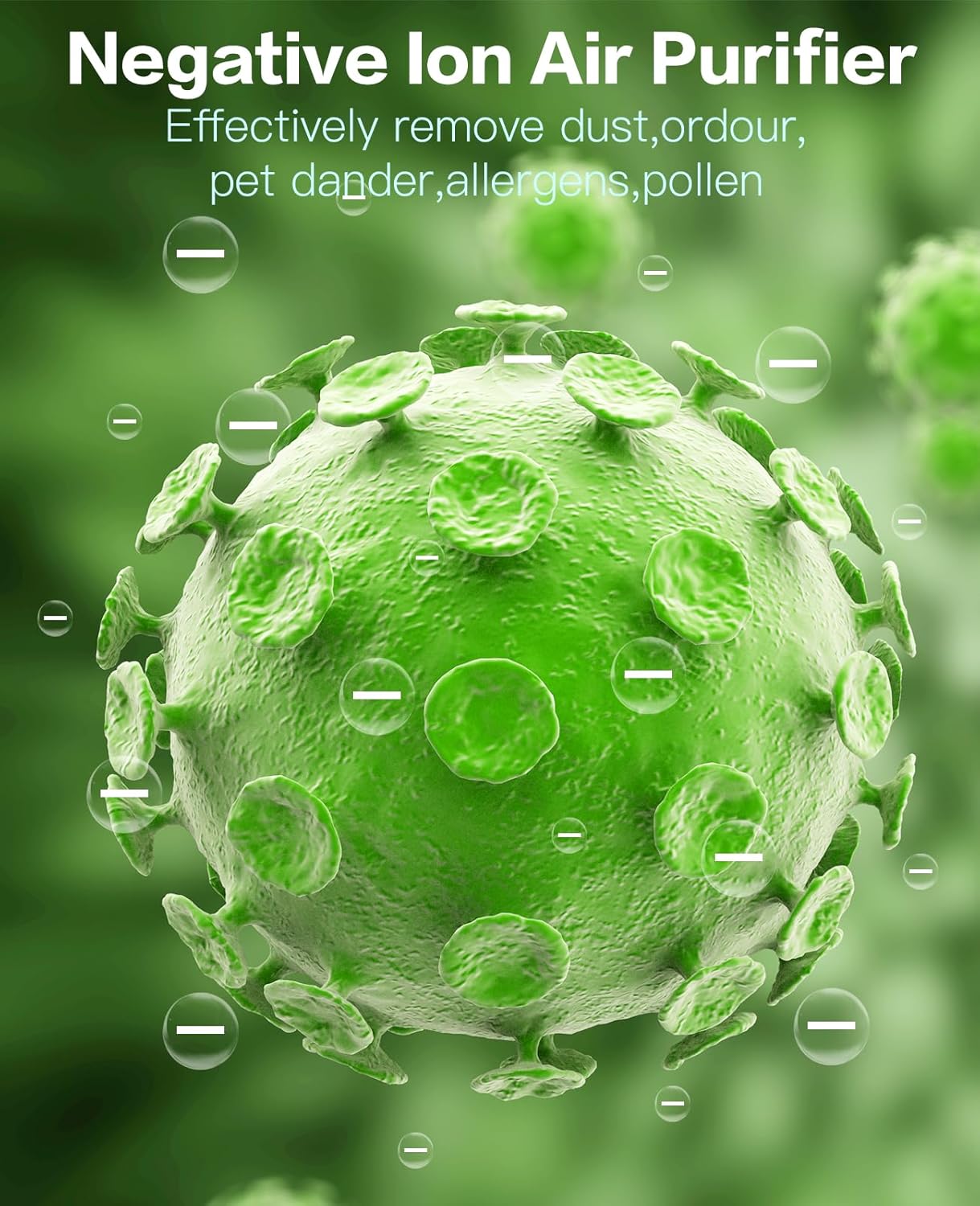 • 【Enhanced Powerful Filtration Speed】-The home air ionizers has adapted latest negative ion technology,more effectively help to clean pet smells,other odors from bedroom,bathroom,dining room,living room,and kitchen