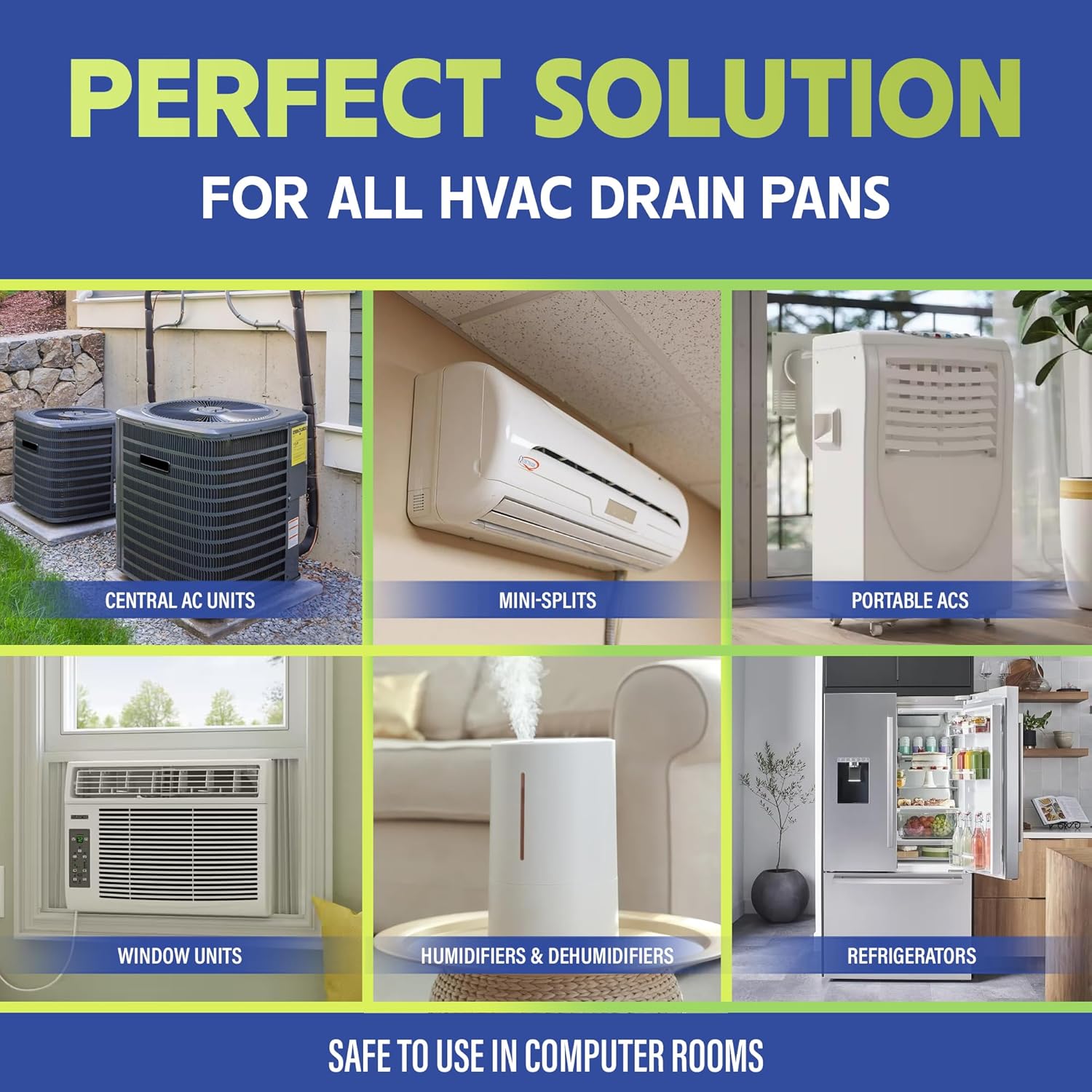 • Fully Dissolves with No Residue or Odor - Each pan tablet for ac units dissolves completely, ensuring no leftover grit or sticky buildup in the lines. Designed to keep your air conditioner drain line cleaner while also minimizing odor problems common in dirty condensate drain pans and cooling systems.