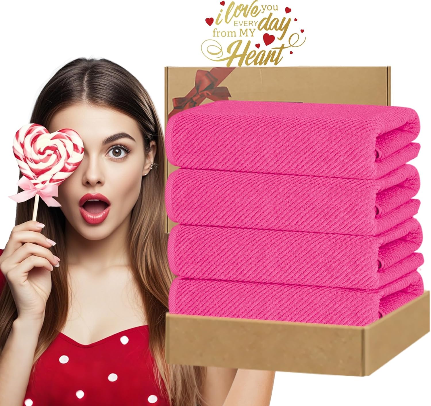 Hot Pink Bath Towels (4PC Large, 30"x56") - 100% Cotton | Quick Dry | Light Weight | Thick | Soft | Absorbent, Luxury Shower Towels with Hanging Loops, Towel Gift Set, Hot Pink Bathroom Accessories