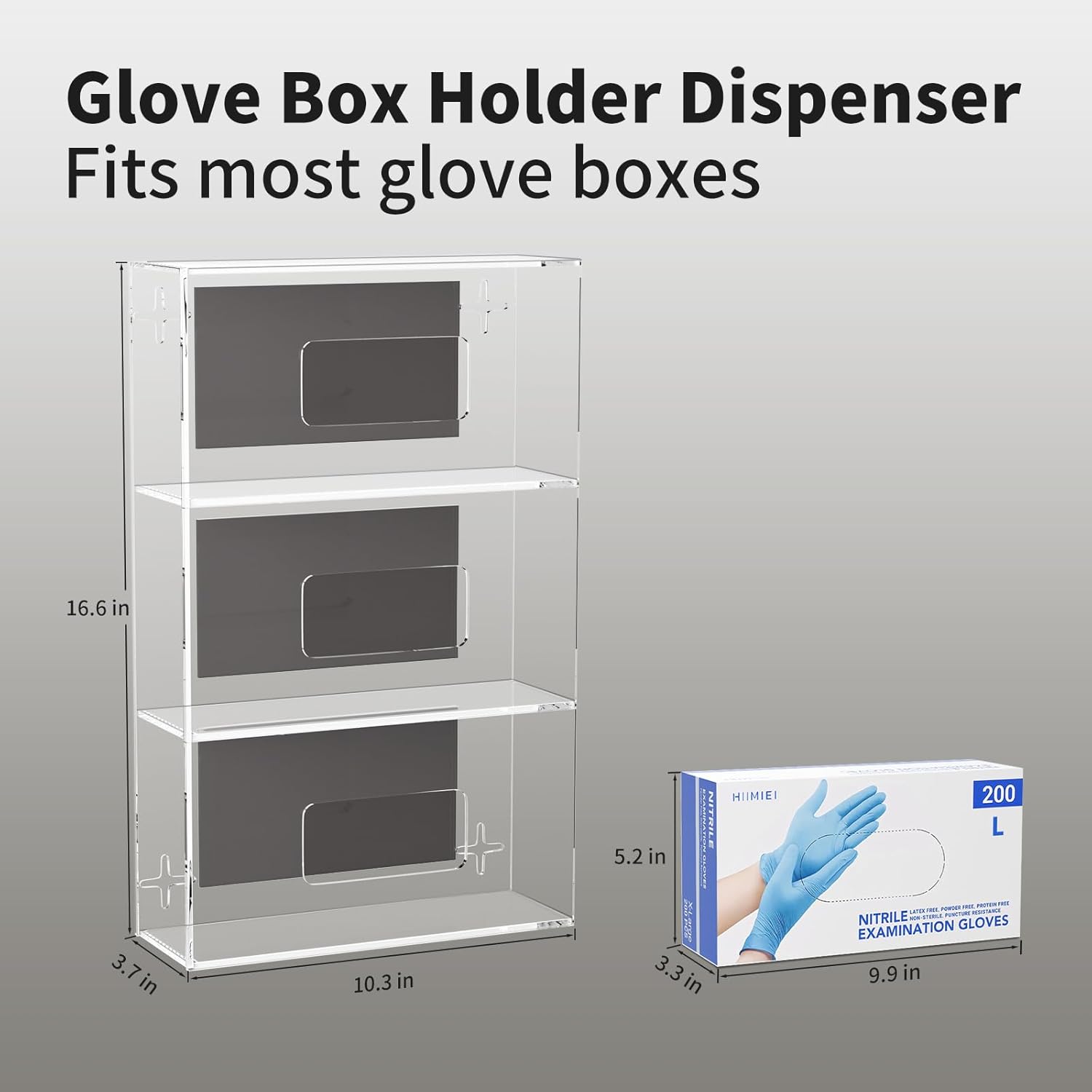 • 【Premium crystal acrylic】 Highly transparent acrylic of this rubber disposable gloves holders inside with single,double,triples size options, the package contains acrylic gloves dispenser with wall mount screws, 10.3"X3.7"X16.6".