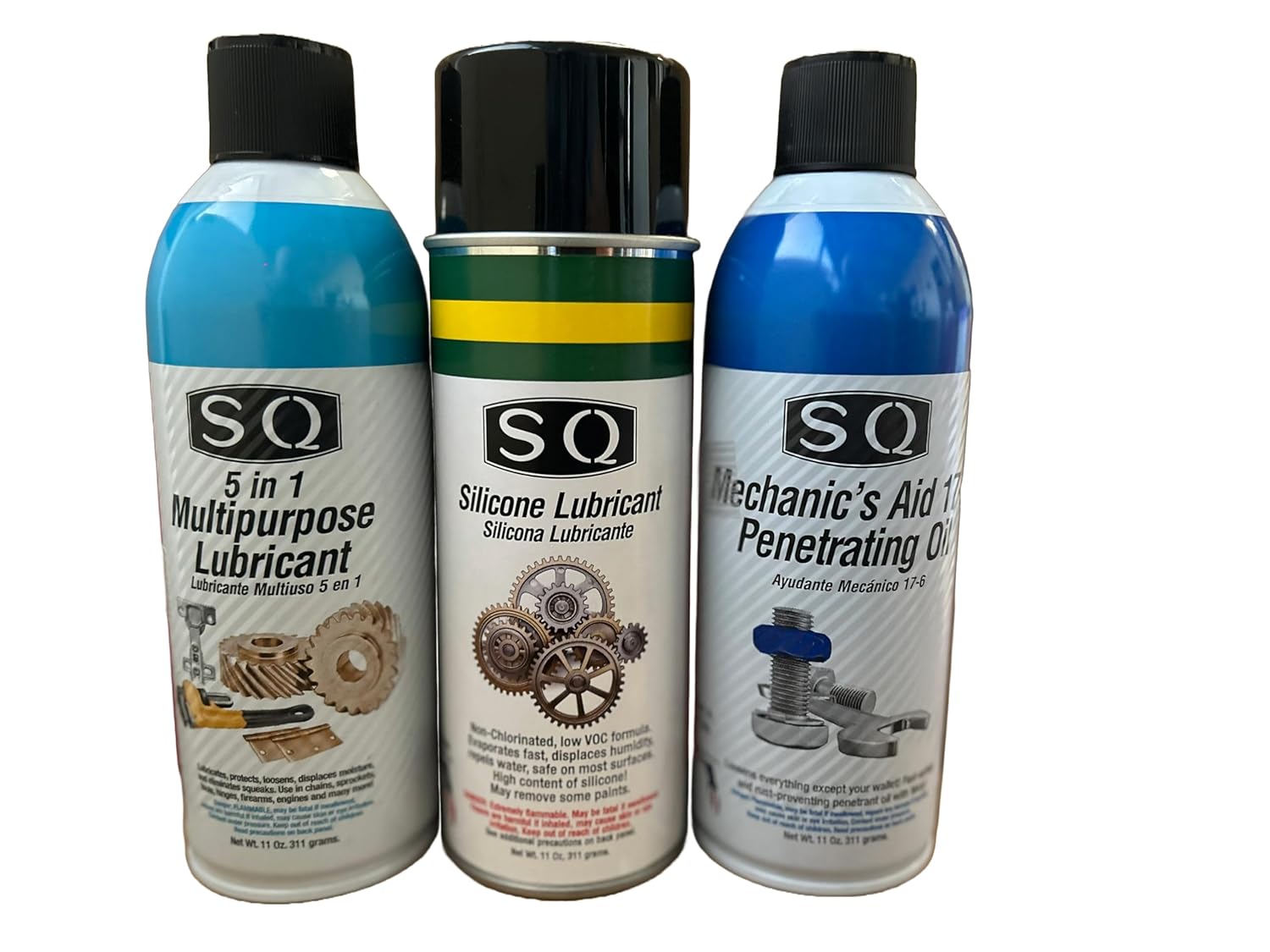 • With the SQ 5 in 1 Multipurpose Oil and Lubricant, 11 Oz per can, enjoy the benefits of a lubricant oil that eliminates squeaks and displaces humidity. Ideal for drilling, cleaning weapons, fisshing reals, hinges, tools, and many more! High viscosity oil that can be used for every application