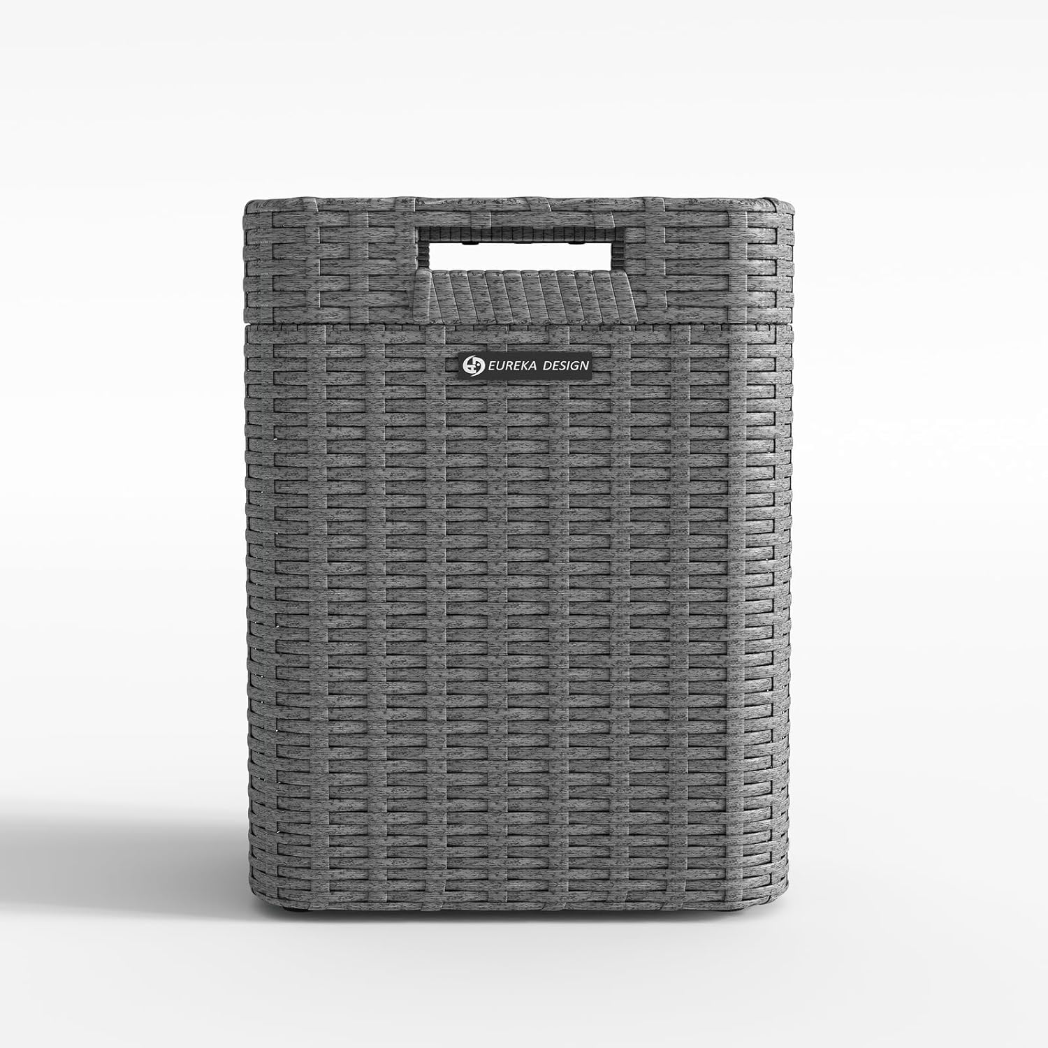 Ypati Handwoven Rattan Trash Can with Lid, Indoor and Outdoor, 4.5 Gallon with Complementary Shelf, Waste Container for Bathroom, Patio, Study, with Trash Bags, Grey, Designed by Eureka
