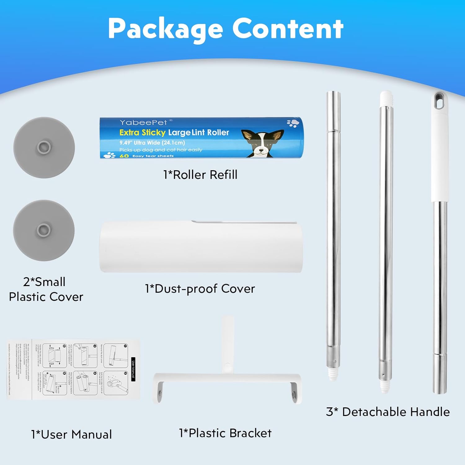 • Extendable Long Handle: This sticky lint roller features a handle that adjusts from 6.7in to 50in, makes it easy to clean large surfaces such as floors, carpets, and walls without bending