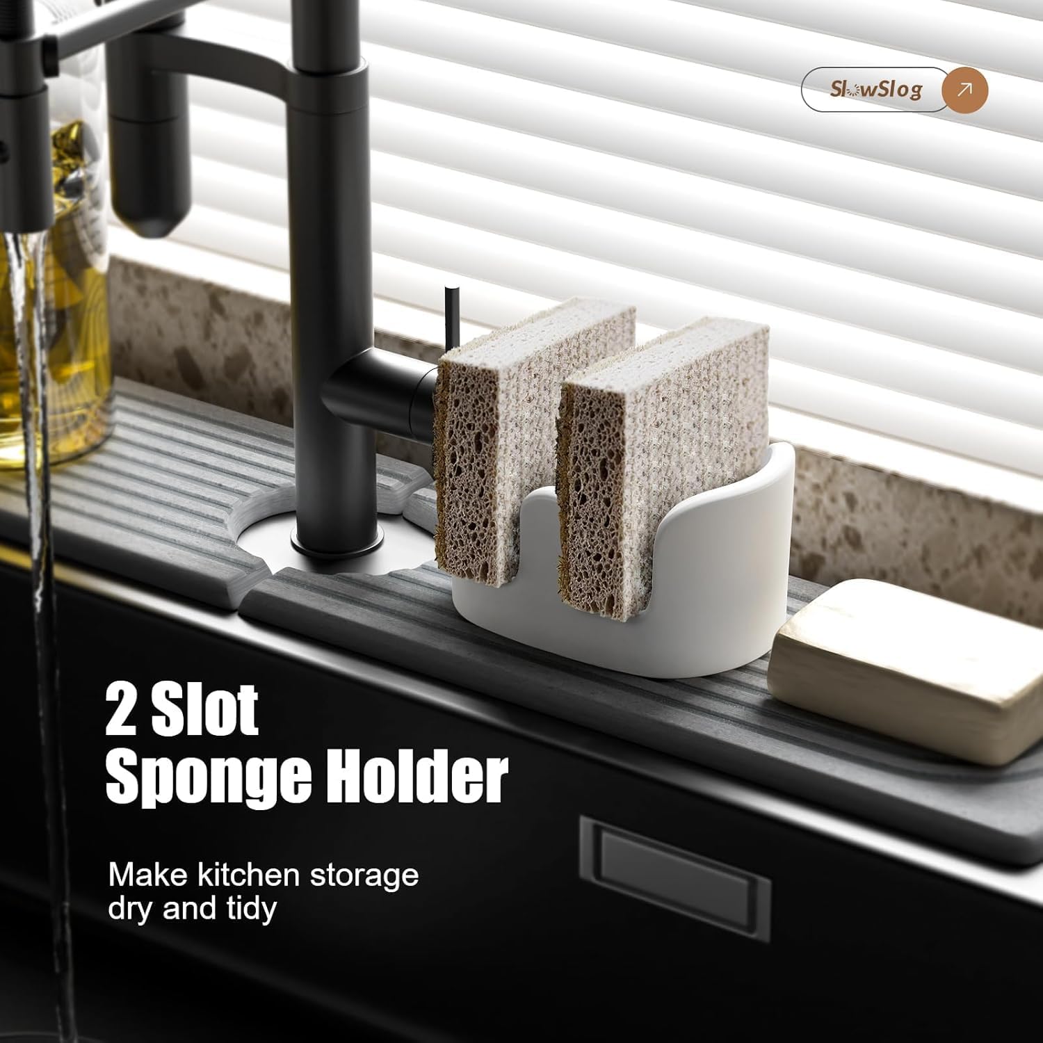 • Innovative Patented Design: The double sponge holder features a two-hole design to accommodate two sponges at once, combining functionality with modern elegance. Elevate your kitchen sink decor with this sleek and practical stone sponge stand