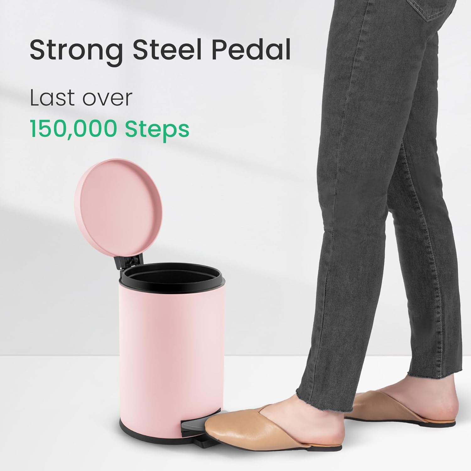 Cesun 1.2 Gallons Small Pink Trash Can, Bathroom Garbage Can with Lid and Foot Pedal, Mini Round Wastebasket for Bathroom, Bedroom, Office, 4.5 Liters / 1.2 Gallons, Pink
